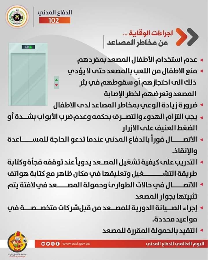 وتضمنت الإرشادات الصادرة عن الدفاع المدني إجراءات الوقاية من مخاطر المصاعد.