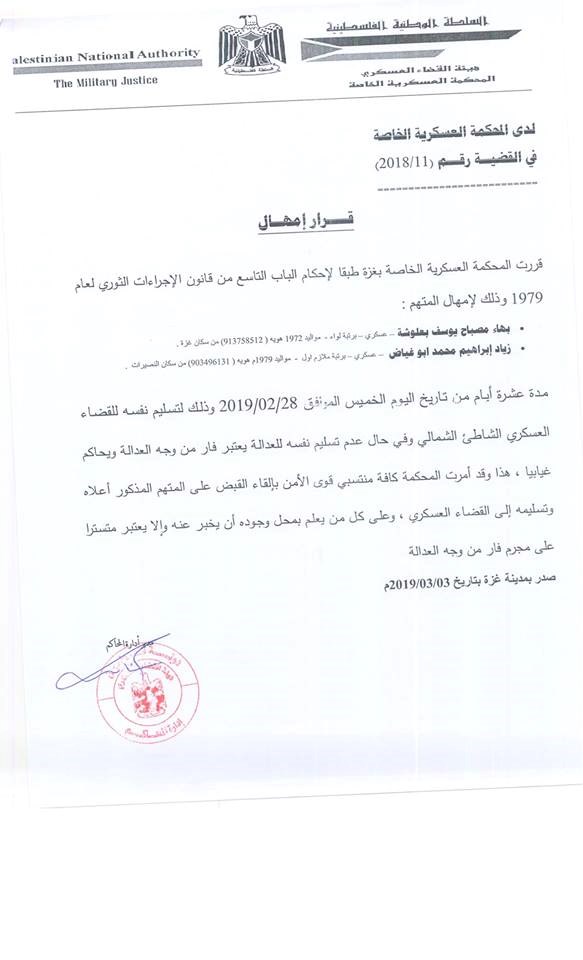 تاريخ يوم الخميس الموافق 28/2/2019 0 لتسليم أنفسهم للقضاء العسكري.