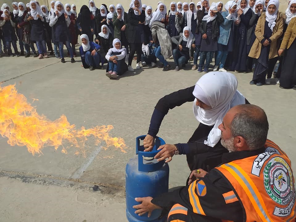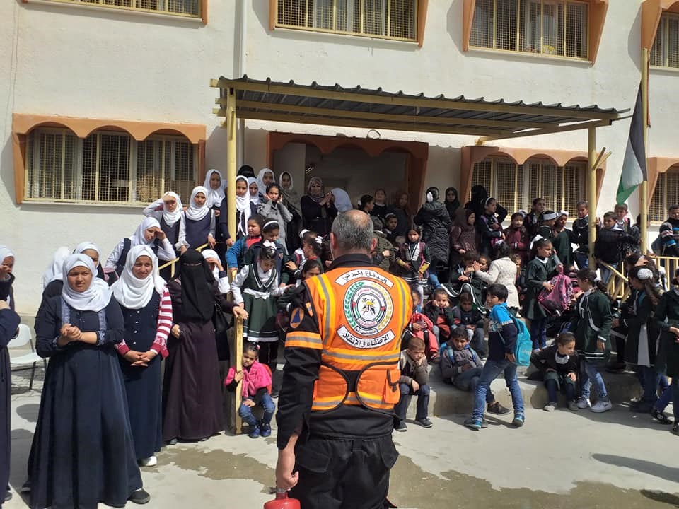 نظمت إدارة التدريب في المديرية العامة للدفاع المدني في محافظة رفح - جنوب قطاع غزة، بالتعاون مع مديرية التربية والتعليم مناورة تدريبيه، و محاضرات توعوية في علوم الدفاع المدن، والسلامة المنزلية وطرق الإخلاء الآمن، لطالبات مدرسة نظير اللوقة الأساسية.