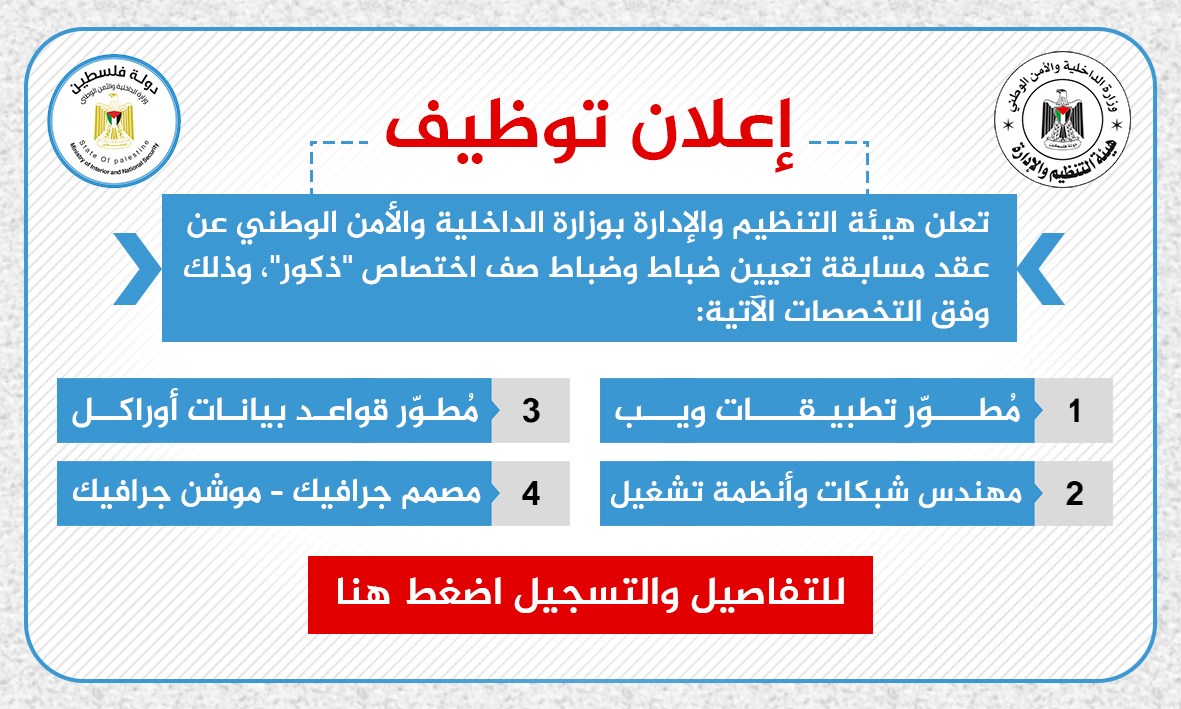 والإدارة بوزارة الداخلية والأمن الوطني عن عقد مسابقة تعيين ضباط وضباط صف اختصاص