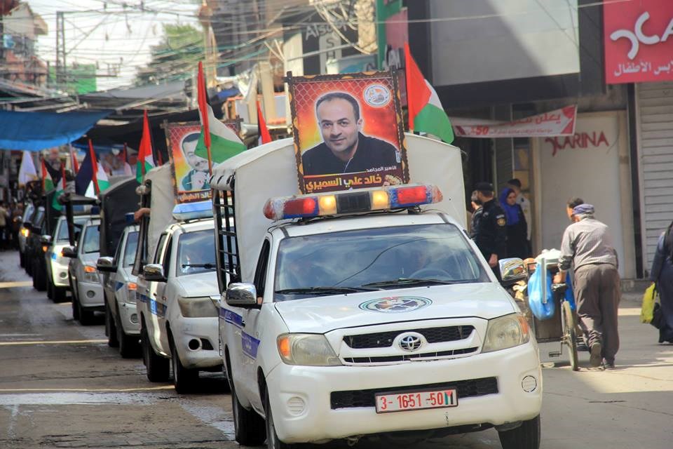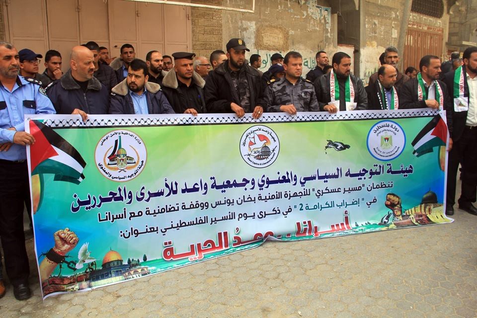 نظمت هيئة التوجيه السياسي والمعنوي بمحافظة خان يونس وبالتعاون مع جمعية واعد للاسرى والمحررين مسيرًا عسكريًا محمولًا للأجهزة الأمنية بمحافظة خانيونس تضامًنا مع الأسرى في معركة الكرامة 2، وذكرى يوم الأسير الفلسطيني.