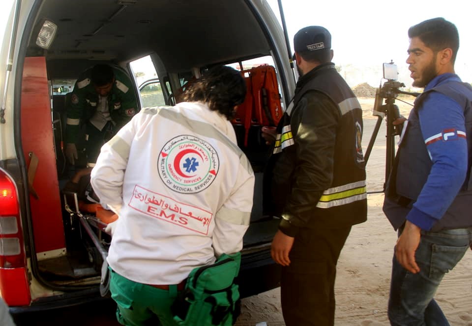 الطبية العسكرية مع العديد من الإصابات التي أُصيبت جرَّاء استهدافها من قبل قوات