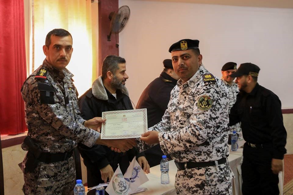 وحضر التكريم مدير عام جهاز الشرطة البحرية عميــد خليل قزعـاط ونائبه عميــد محمد النخالة وعدد من ضباط الجهاز والأجهزة الأمنية المشاركة بالدورات وبمشاركة الجهات ذات العلاقة من ديوان الموظفين و وزارة العدل.