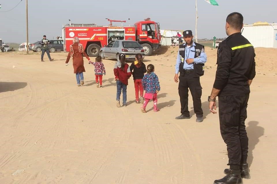 تواصل طواقم الدفاع المدني، والخدمات الطبية، وقوات الأمن والشرطة، المنتشرة في كافة الشوارع والميادين؛ إسنادها للجماهير وتسهيل تحركهم خلال مشاركتهم في فعاليات الأسبوع الـ 56 من مسيرات العودة وكسر الحصار.