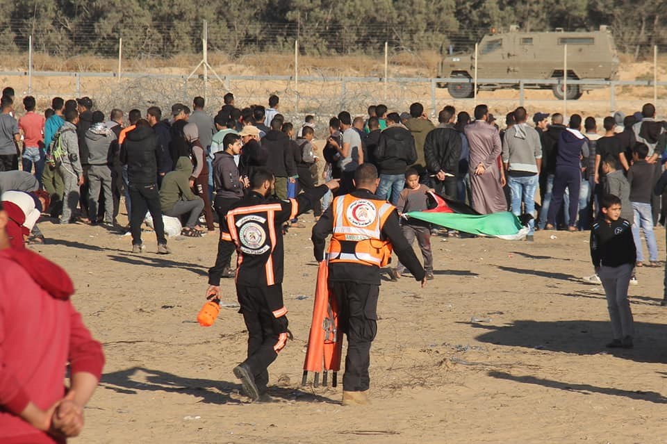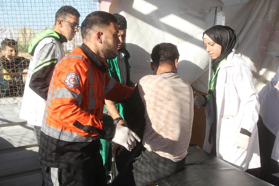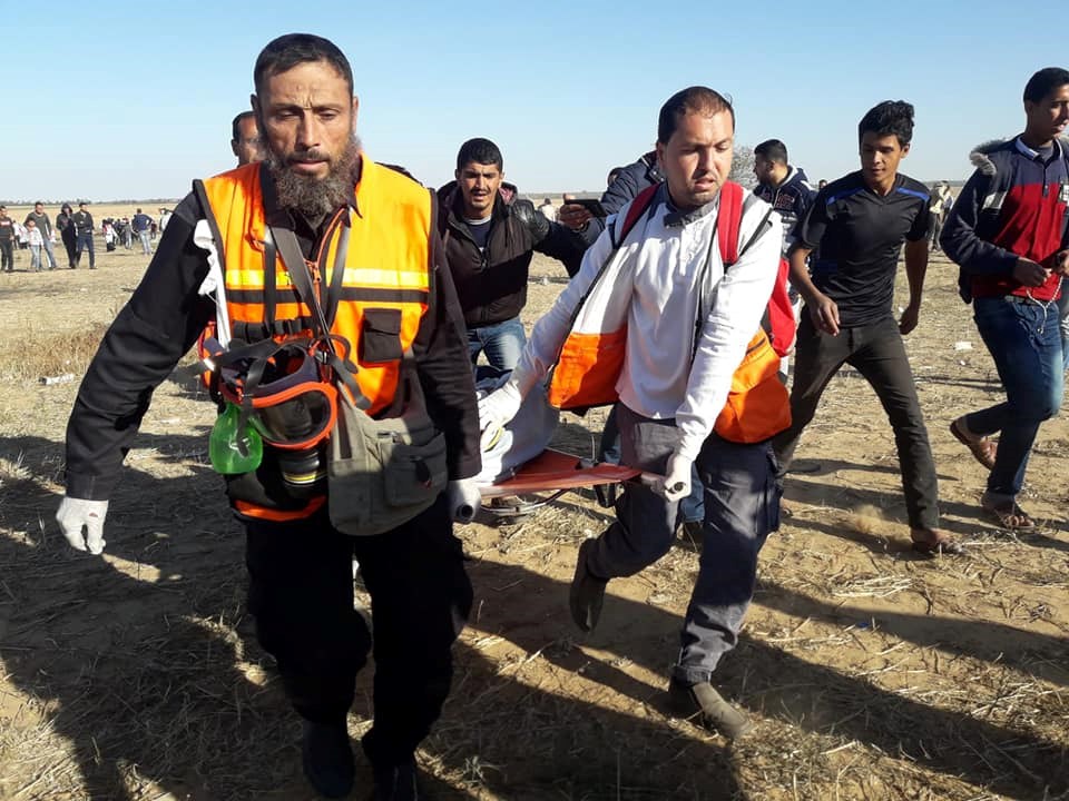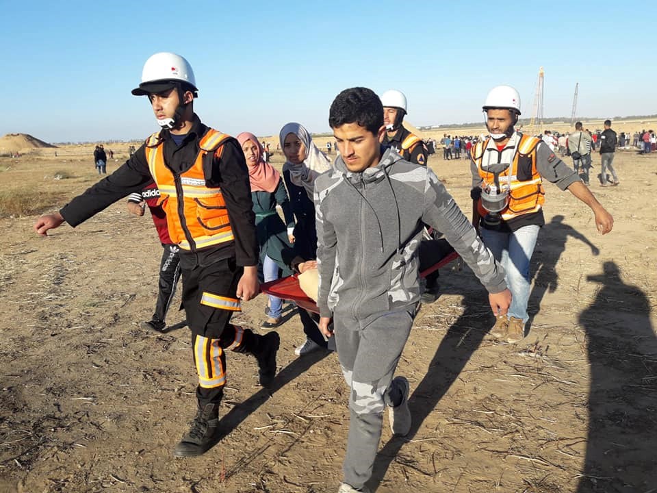 حوادث الإنقاذ والإسعاف للمواطنين المشاركين في الجمعة الـ 59 لمسيرات العودة وكسر الحصار، ونقلت عدد آخر منهم