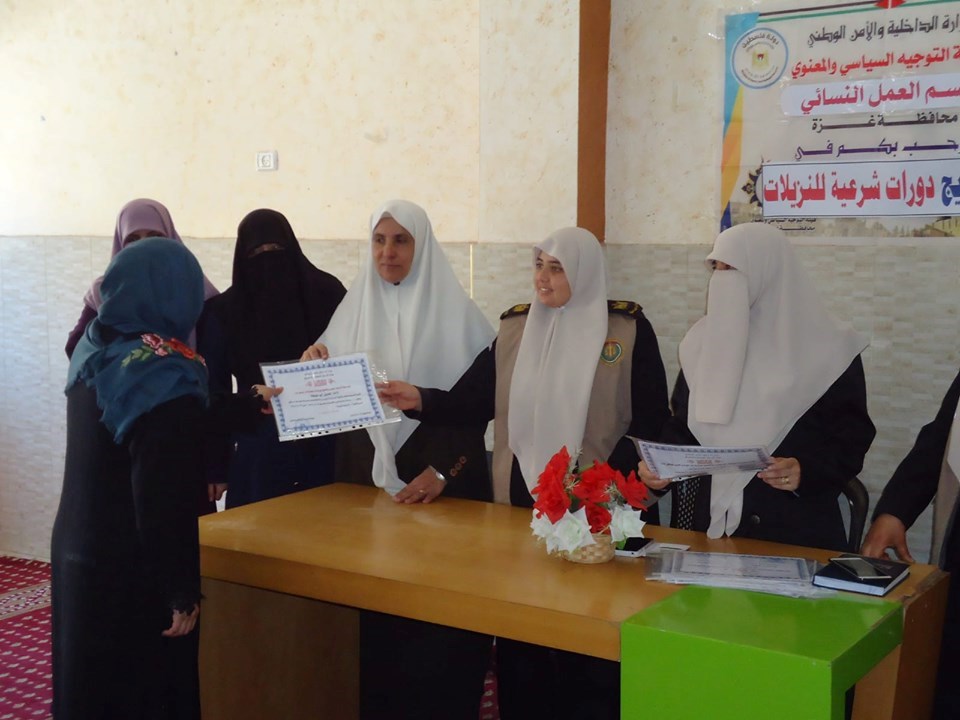 خرجت وحدة العمل النسائي بهيئة التوجيه السياسي والمعنوي في غزة عددًا من الدورات الشرعية لـ55 نزيلة من مركز التأهيل والإصلاح بالمحافظة.