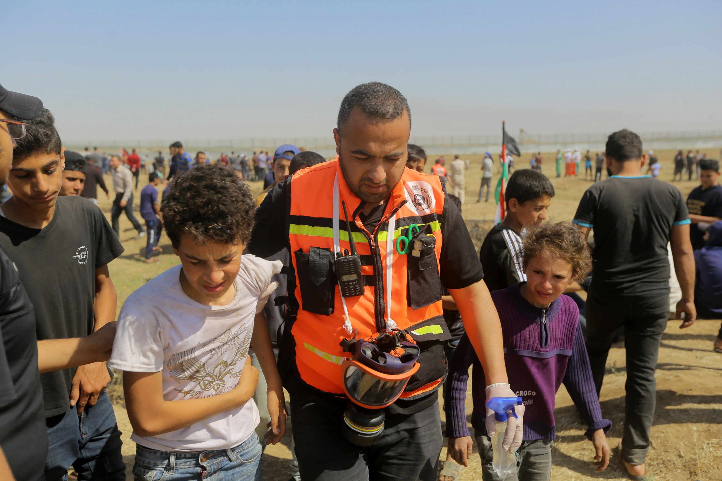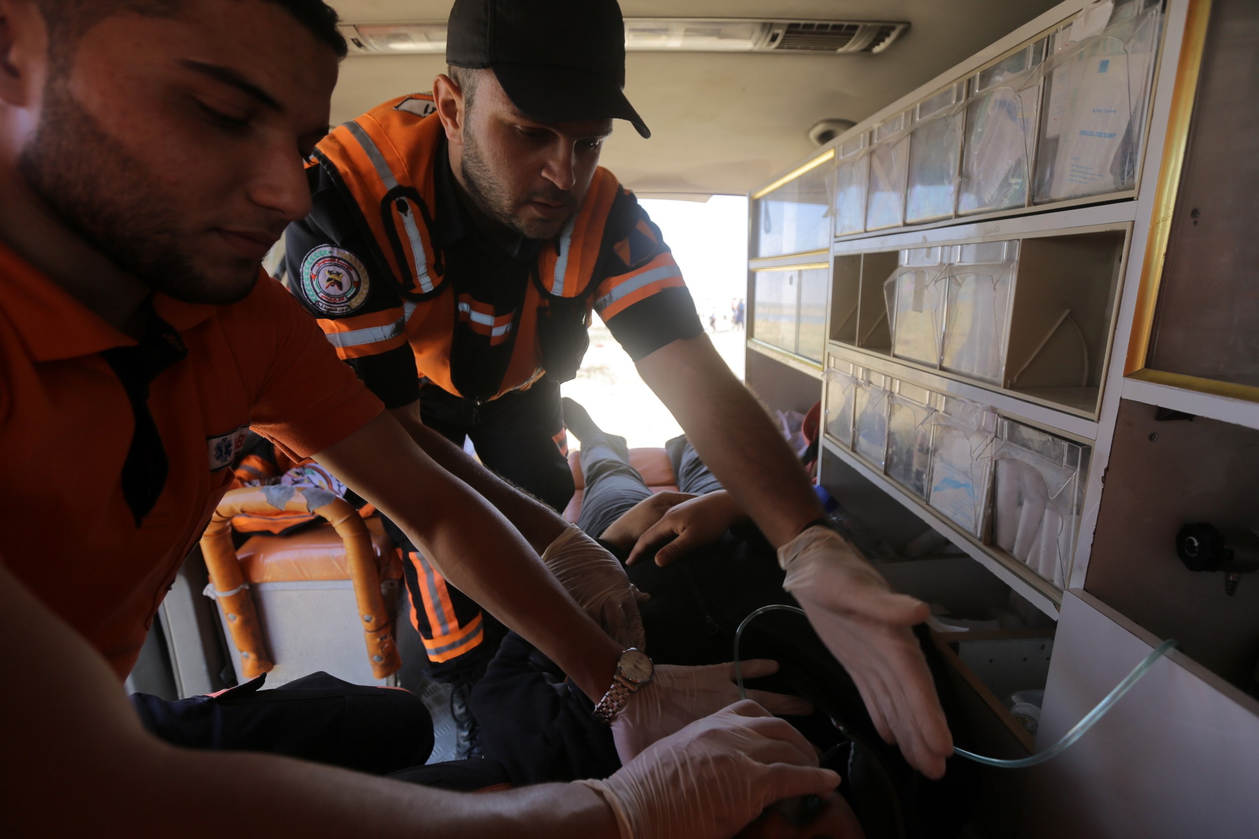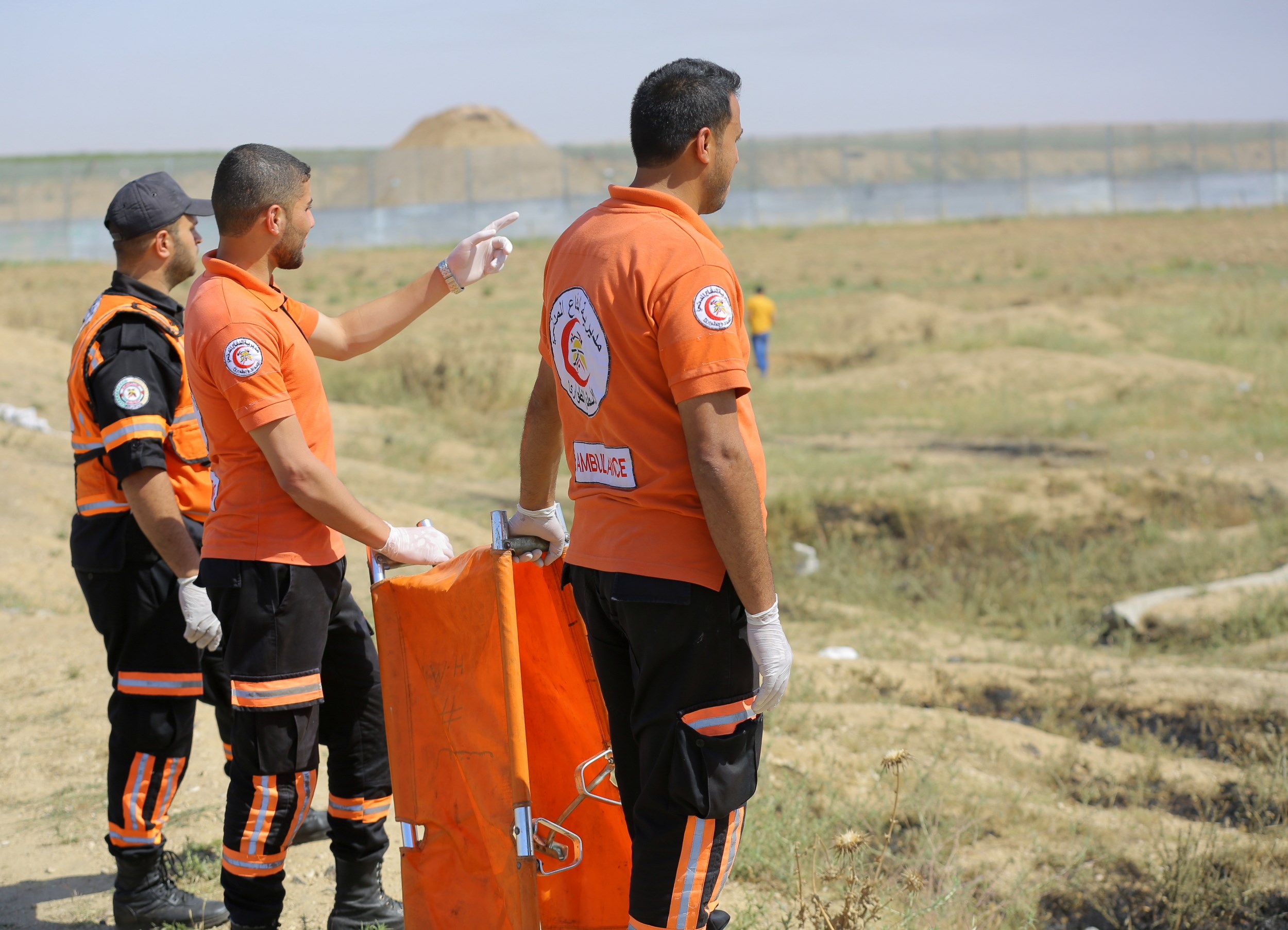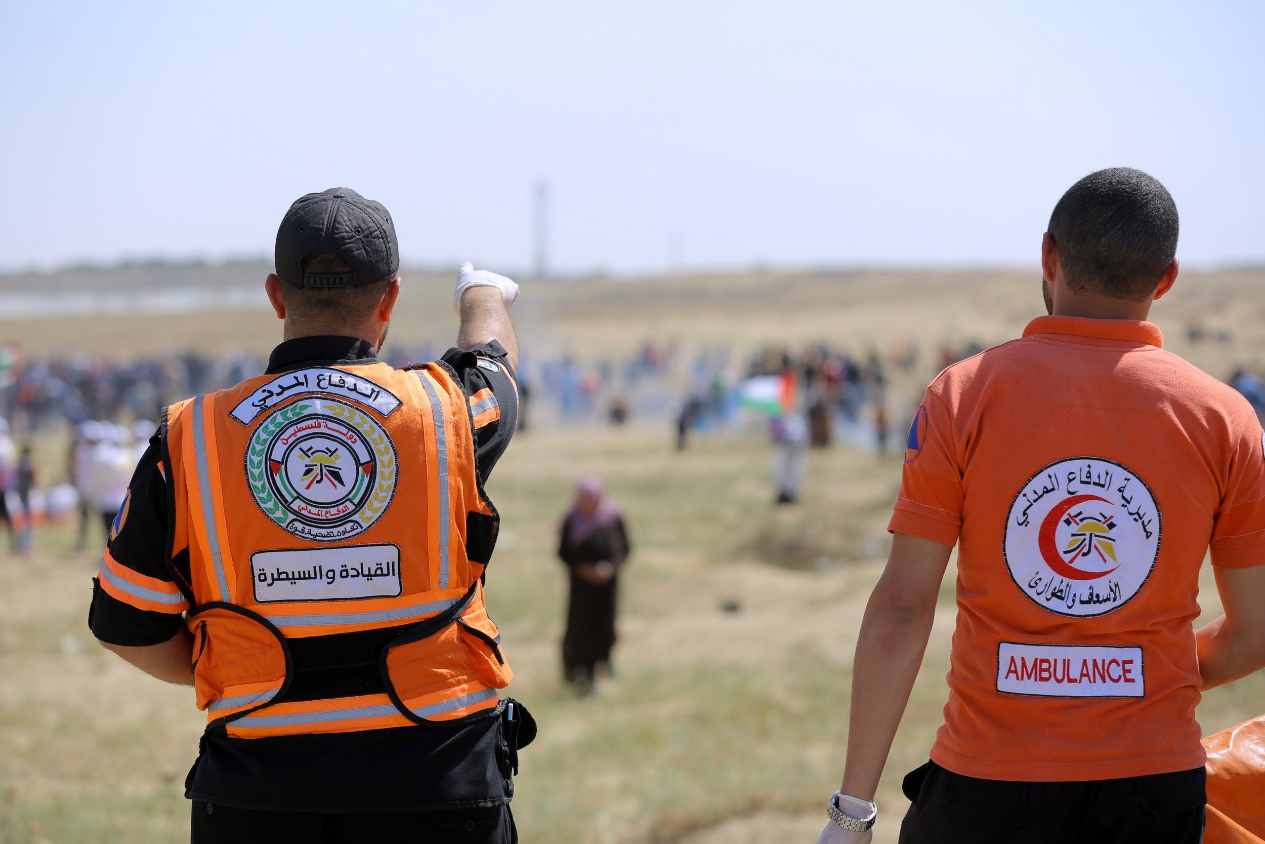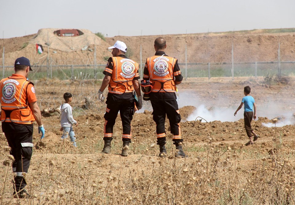 وإخلاء الجرحى، حيث أصيب المسعف علاء النعيزي من طواقم الدفاع المدني بطلق مطاط والمسعف