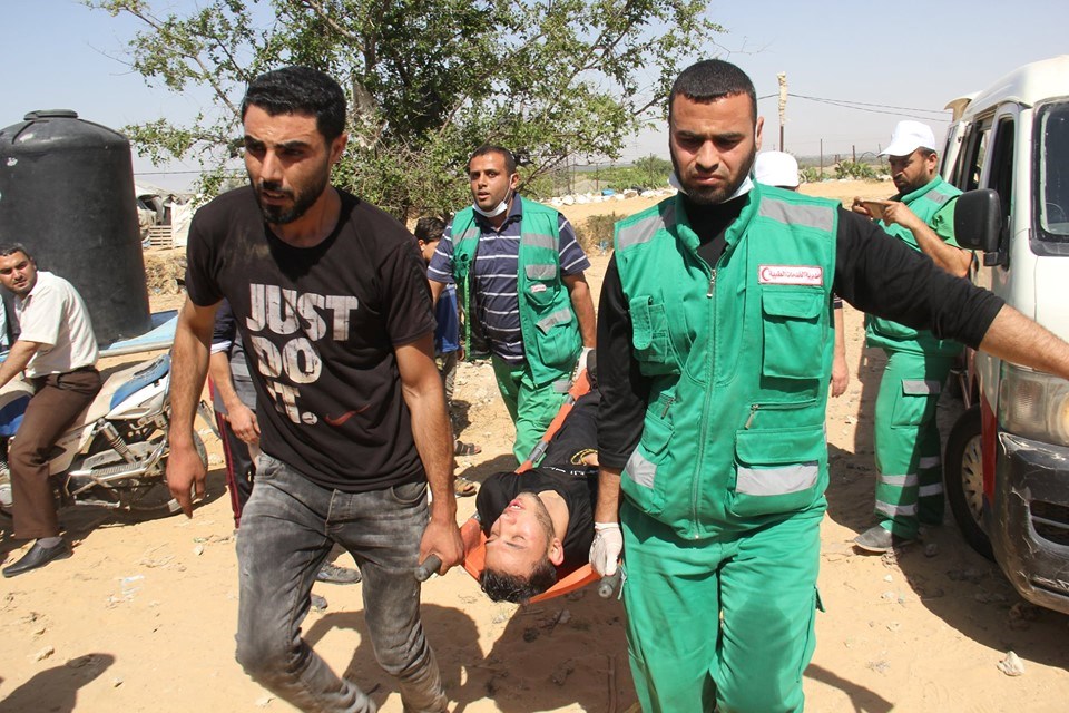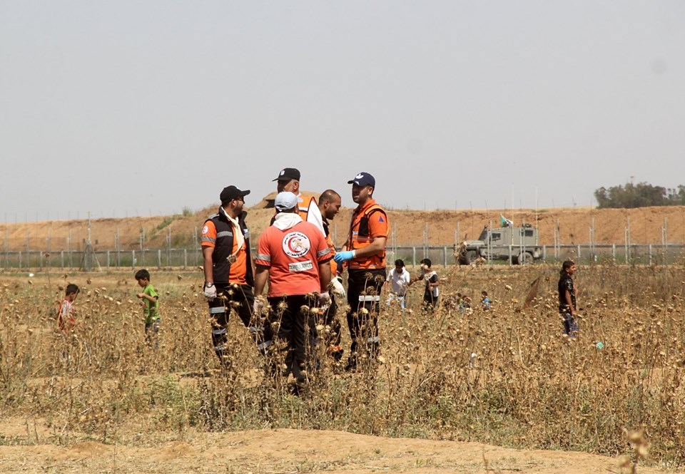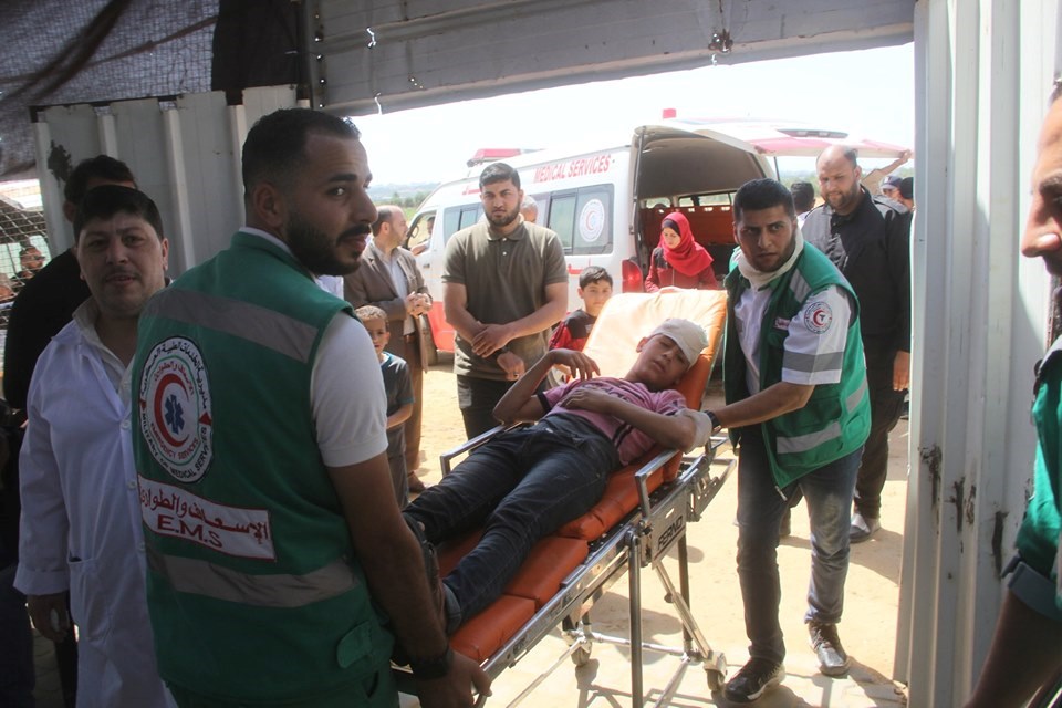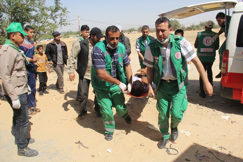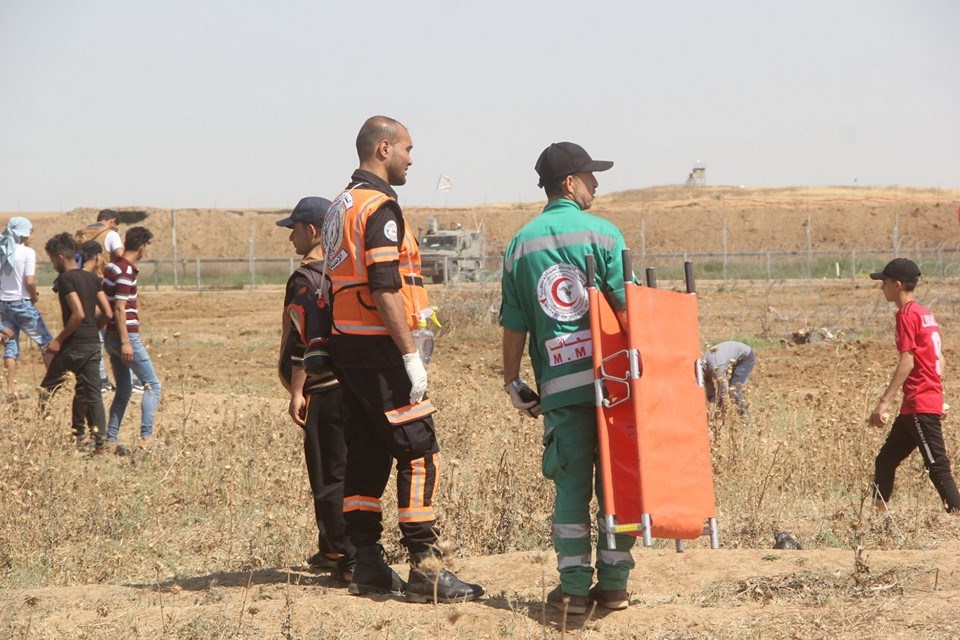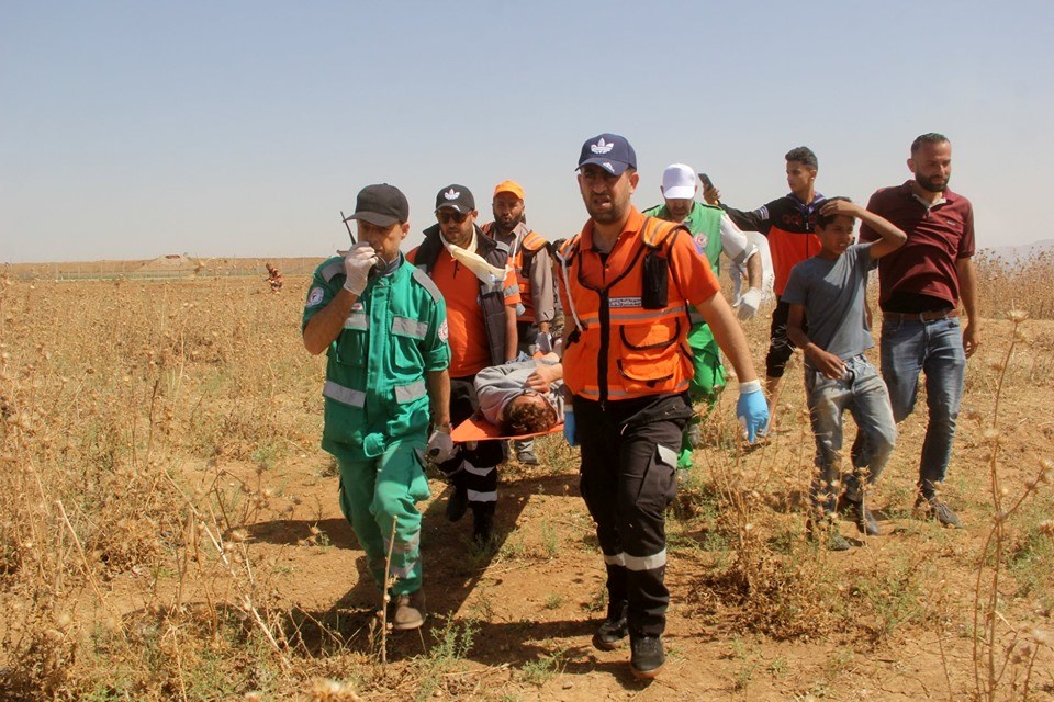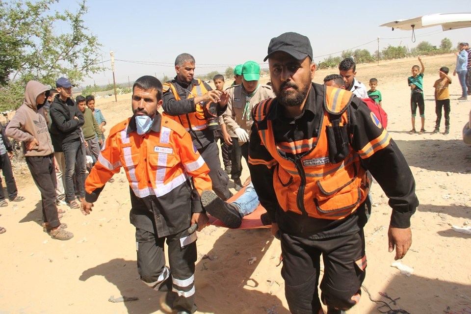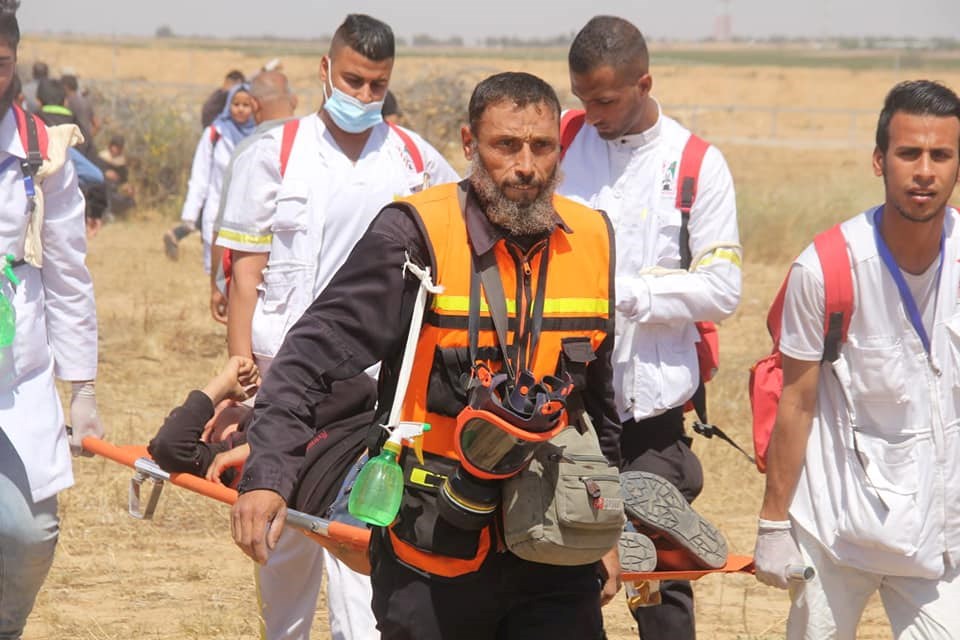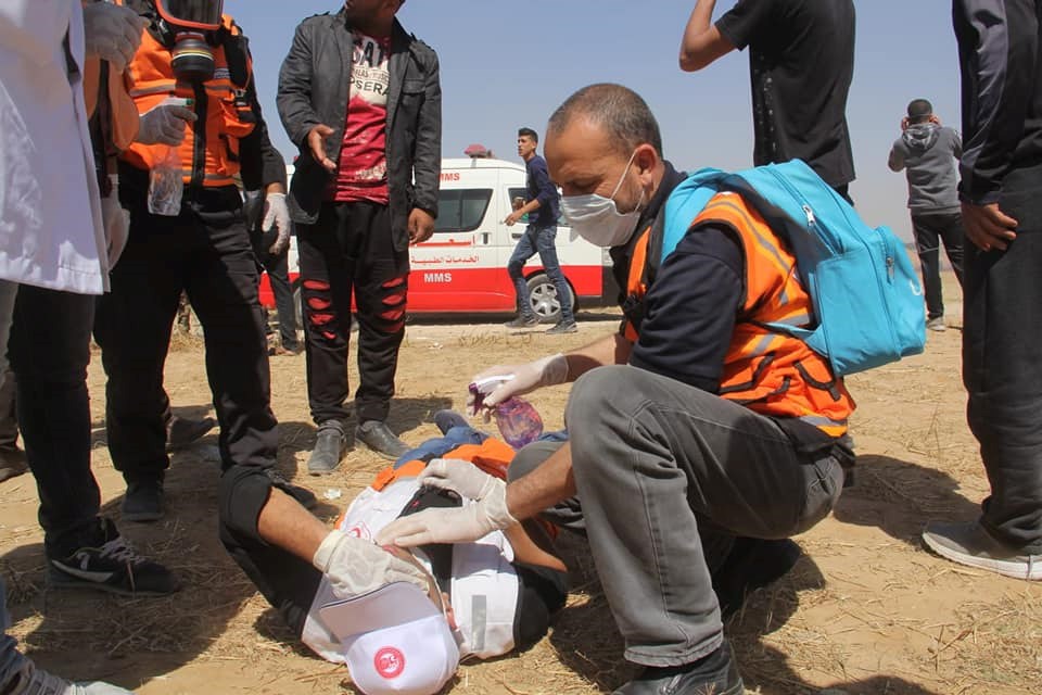 عادل المشهراوي من الخدمات الطبية بعيار مطاطي بالرأس خلال إسعافهما الجرحى بمنطقة
