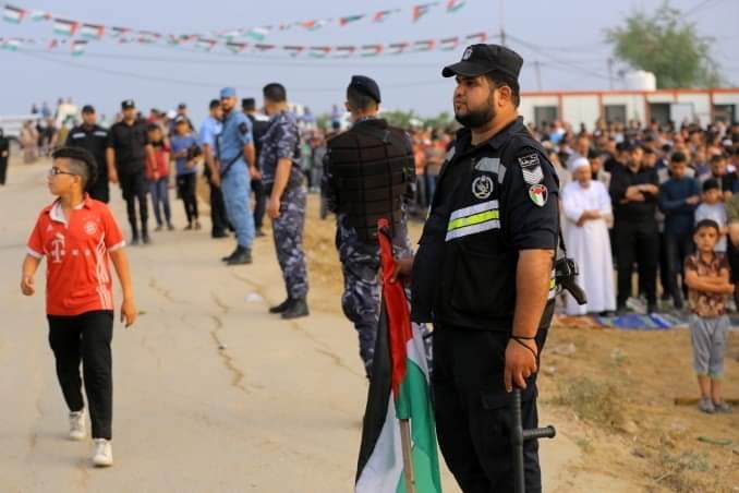 وشارك في تأمين صلاة وخطبة عيد الفطر التي أمها النائب في المجلس التشريعي د. خليل الحية، عدة أجهزة أمنية وإدارات ضمت "الشرطة الفلسطينية والأمن والحماية والأمن الداخلي والشرطة العسكرية وشرطة المرور والمباحث العامة والدوريات والنجدة والشرطة النسائية والتدخل وحفظ النظام والأمن الوطني وشرطة الخيالة".