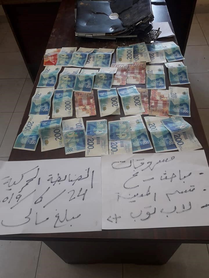 المبلغ ويقدر 25 ألف شيكل، بالإضافة إلى جهاز لاب توب ومبلغ 300 دولار أمريكي.