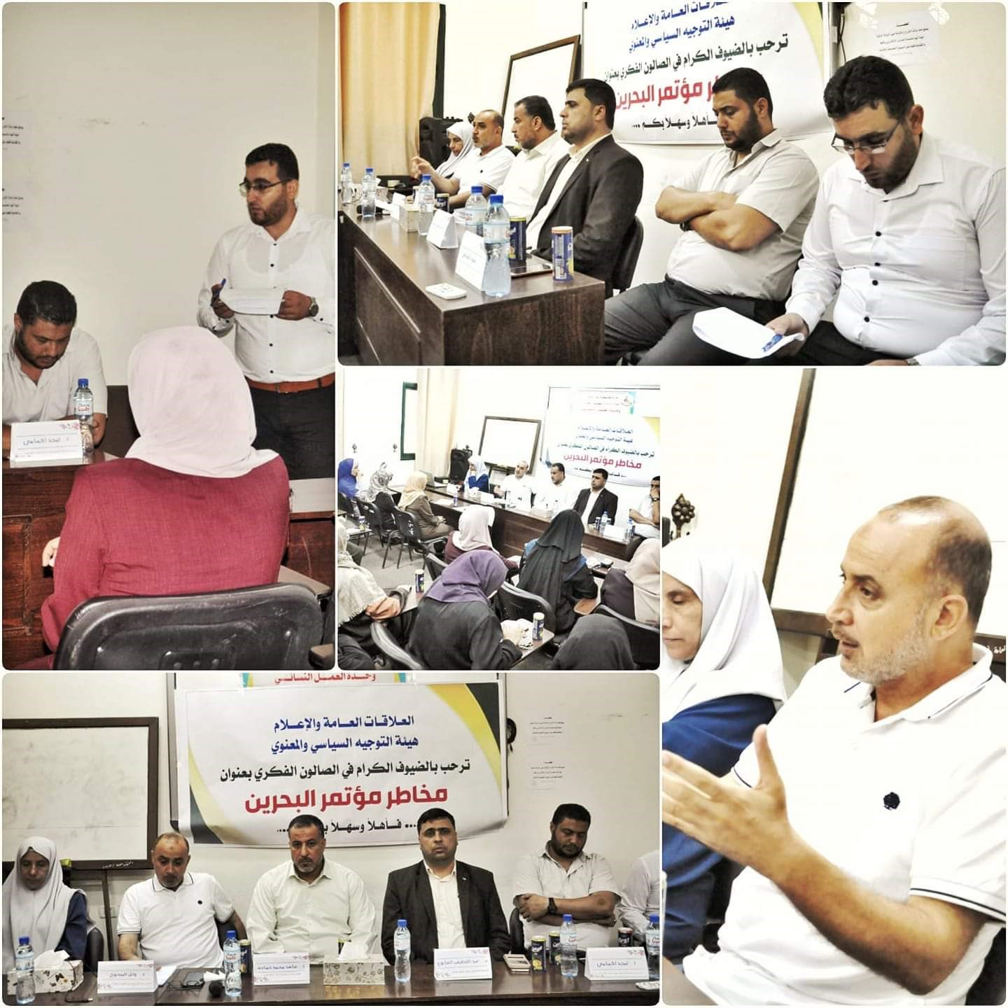 نظمت العلاقات العامة والإعلام بوزارة الداخلية - الشق المدني بالتعاون مع هيئة التوجيه السياسي صالون فكري بعنوان "مخاطر مؤتمر البحرين على القضية الفلسطينية".