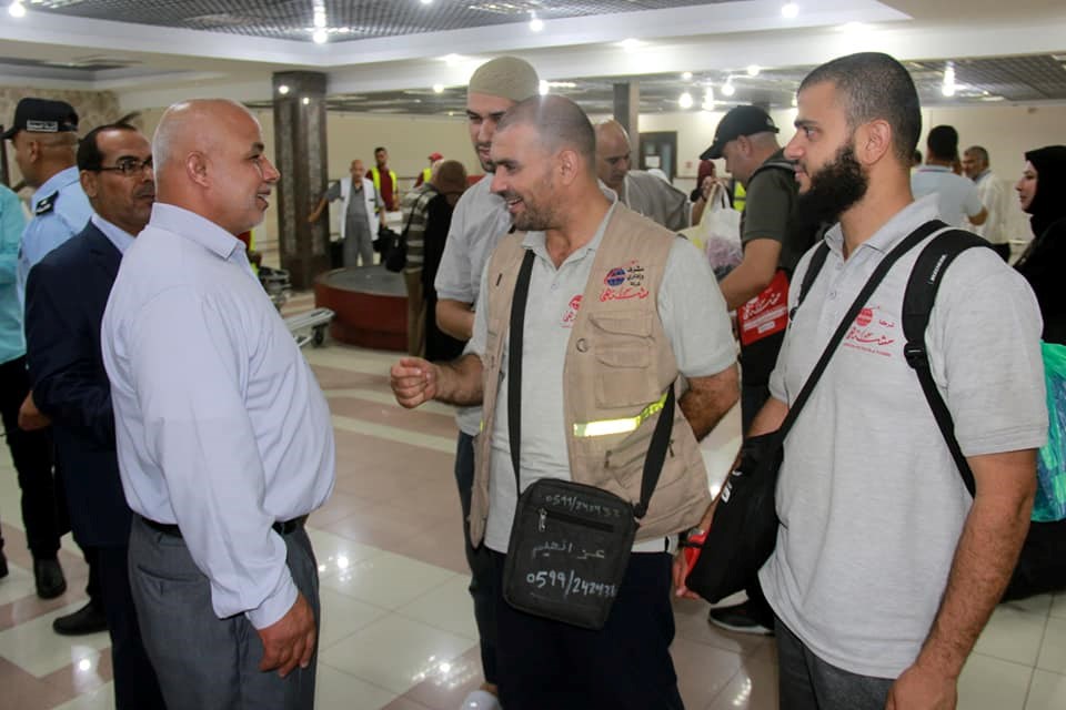 وكان في استقبال الفوج كل من وكيل وزارة الداخلية اللواء توفيق أبو نعيم وطواقم من العلاقات العامة في معبر رفح ووزارة الأوقاف والشئون الدينية، حيث كانت صالة الوصول الخاصة في المعبر على أتم الجهوزية لاستقبالهم وتسهيل مرورهم بعد عناء السفر وختم جوازاتهم ونقل أمتعتهم في أسرع وقت .
