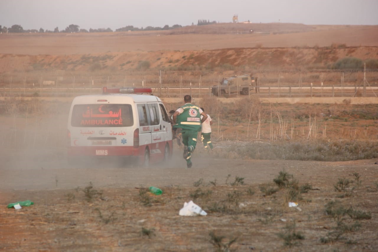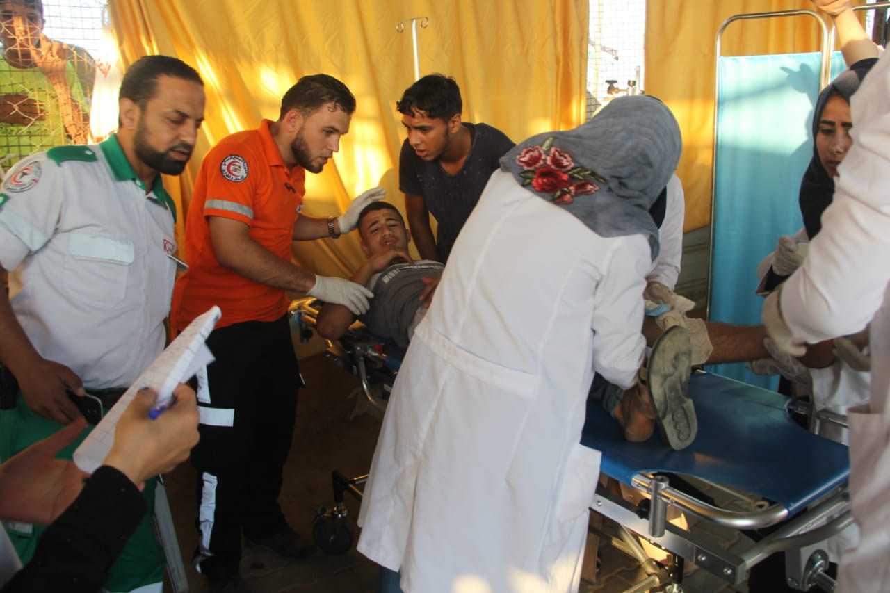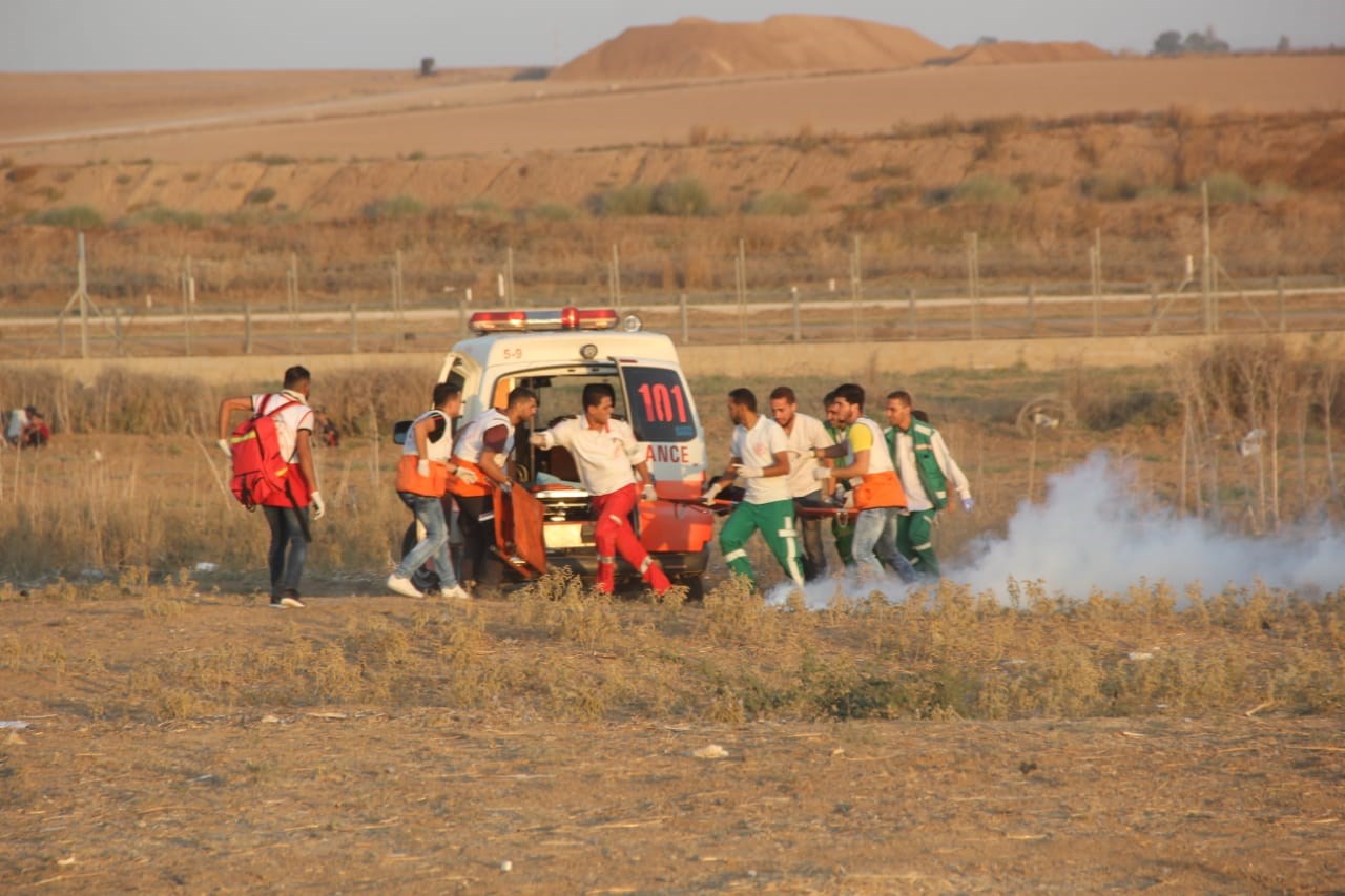 الجماهير وإسعاف المصابين في الأسبوع الـ 73 من مسيرات العودة وكسر الحصار.