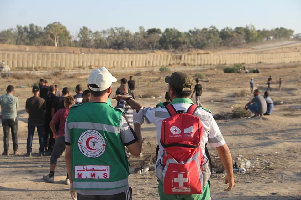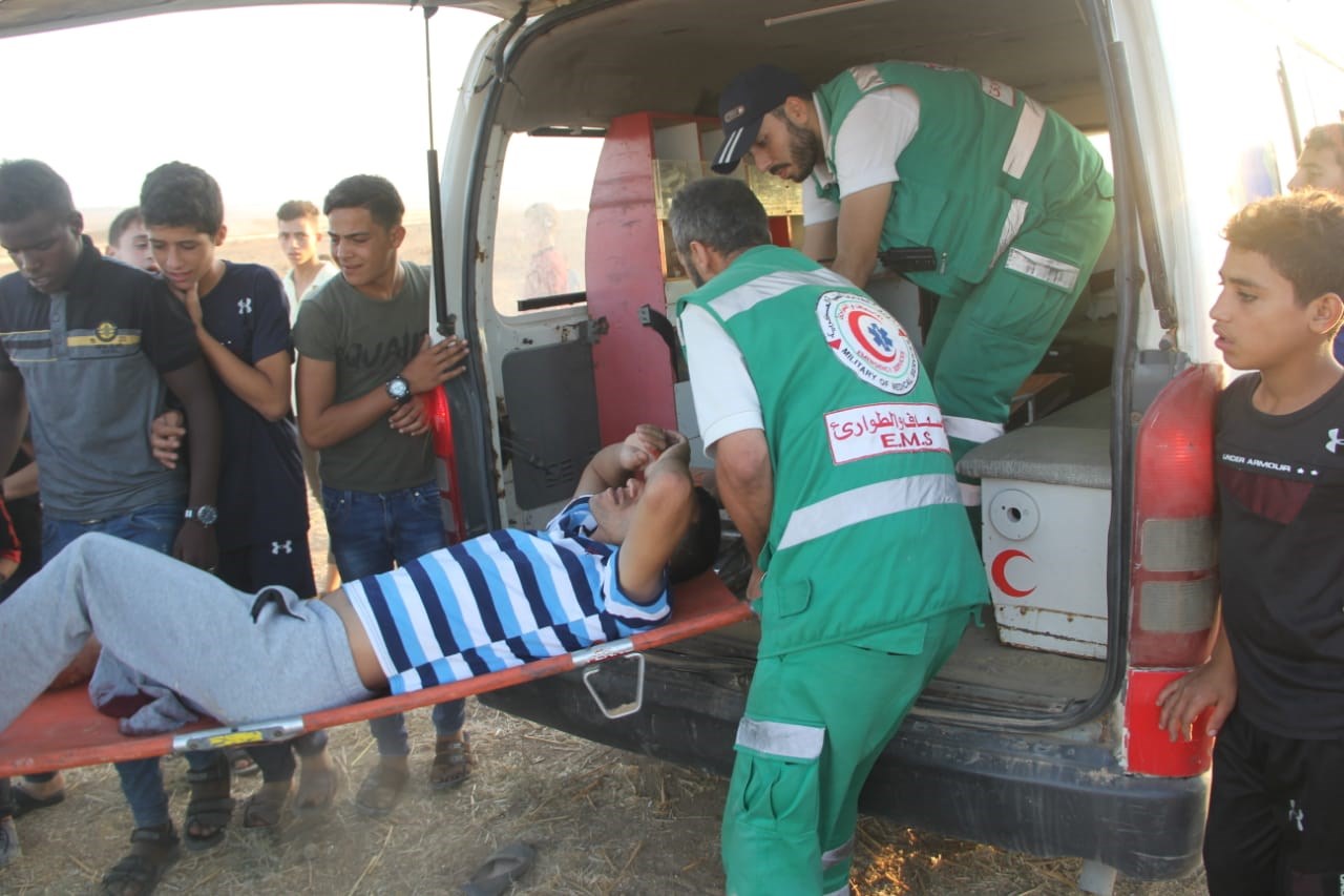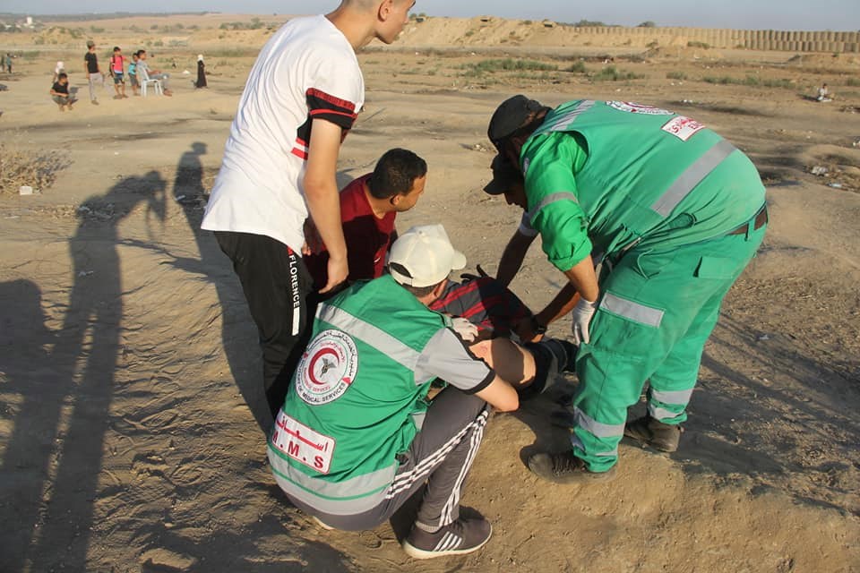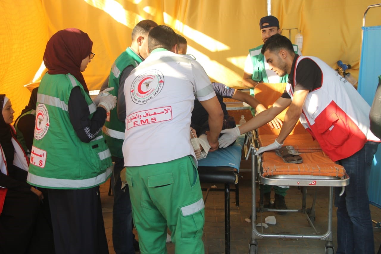 الجماهير وإسعاف المصابين في الأسبوع الـ 73 من مسيرات العودة وكسر الحصار.