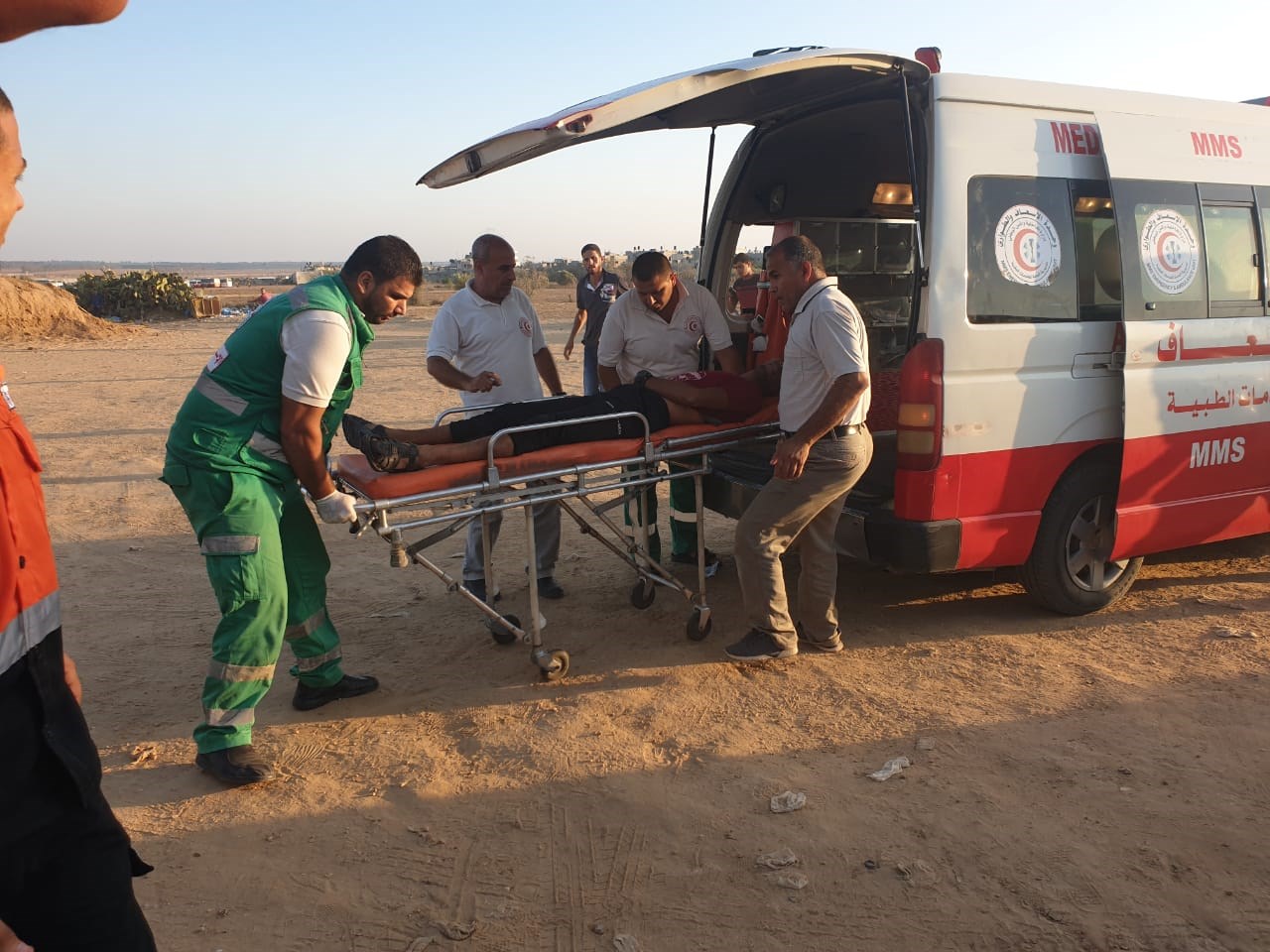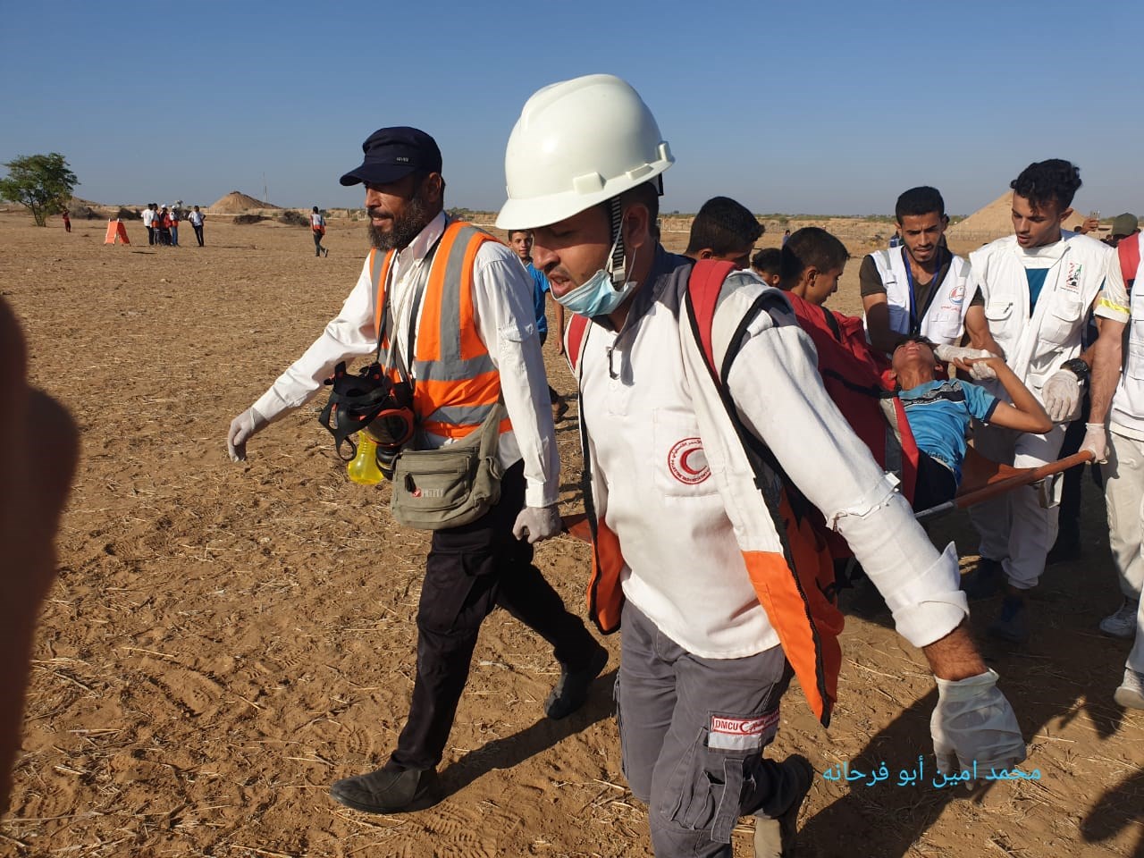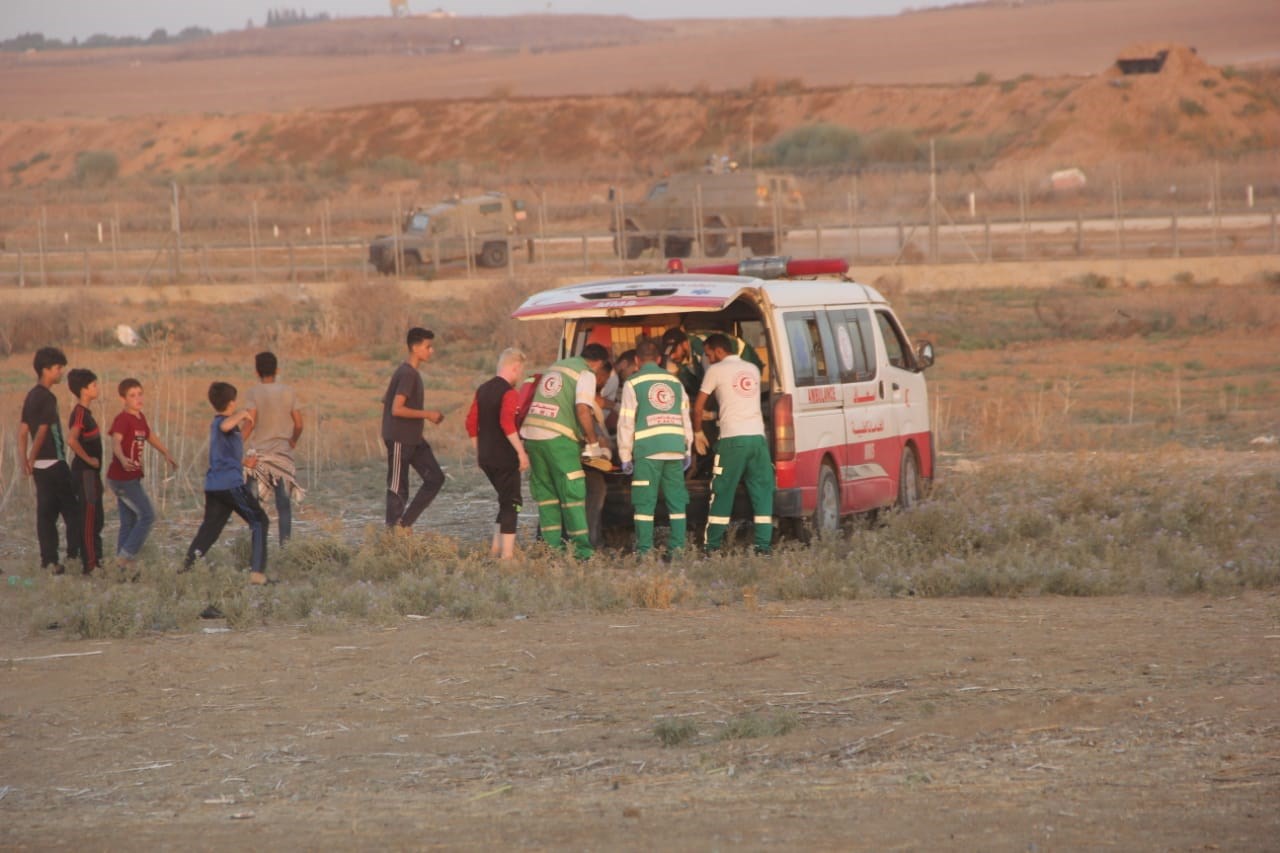 في مسيرات العودة وكسر الحصار، قرب السياج الفاصل على امتداد الحدود الشرقية لقطاع