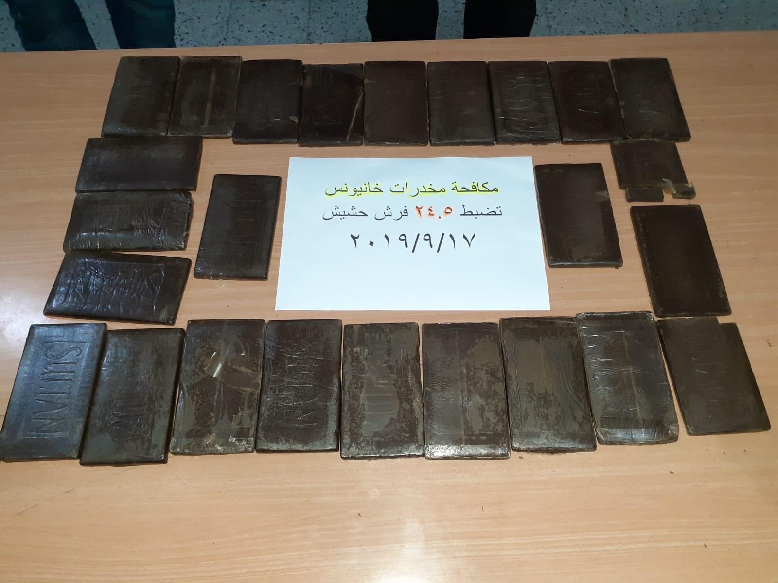 شرطة مكافحة المخدرات -فرع خانيونس، مساء أمس الثلاثاء، 24.5 فرش حشيش، وذلك بإسناد