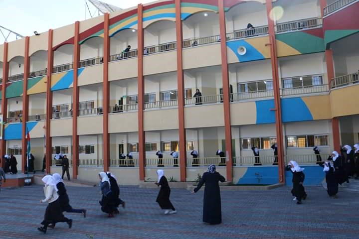 تدريب محافظة خانيونس مناورة إخلاء لمدرسة فاروق الفرا الثانوية للبنات بمدينة خانيونس