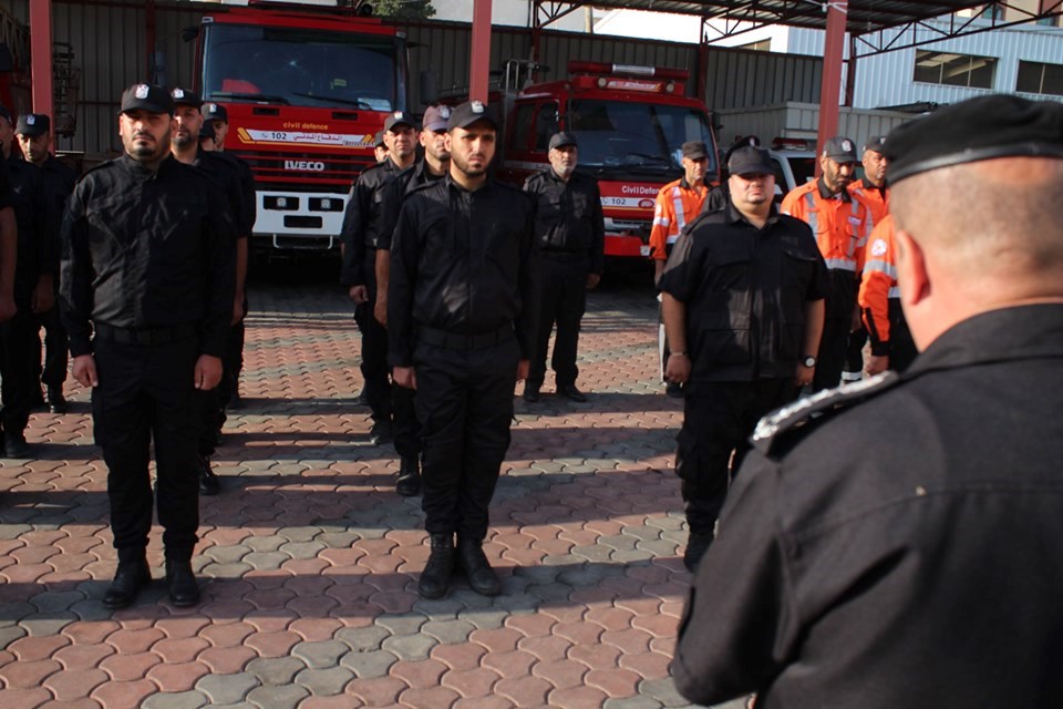 مركز دفاع مدني "تل الهوى" جنوب غزة طابور أركان عسكري لضباط وأفراد المركز في المحافظة.