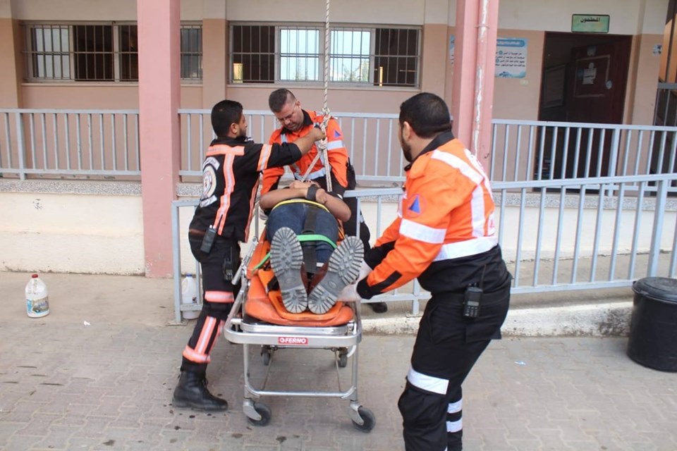 والانزال الامن للمصابين والمحتجزين في المبنى.