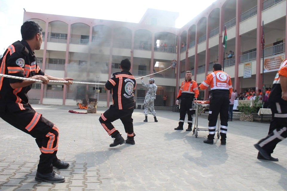 للبنين جنوب مدينة غزة، مناورة تدريبية تُحاكي اخلاء مبنى المدرسة بالكامل في حالات