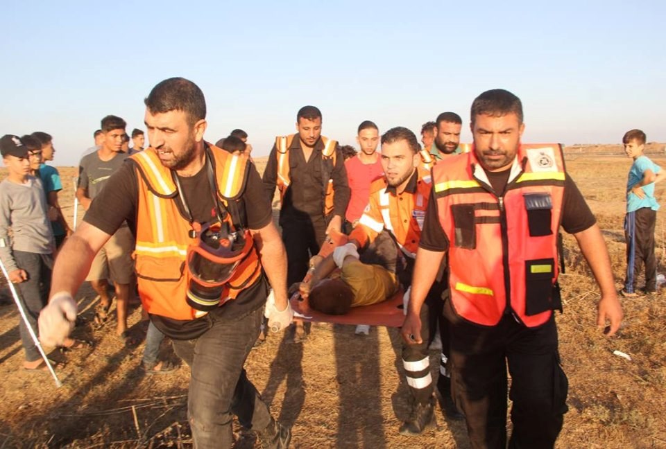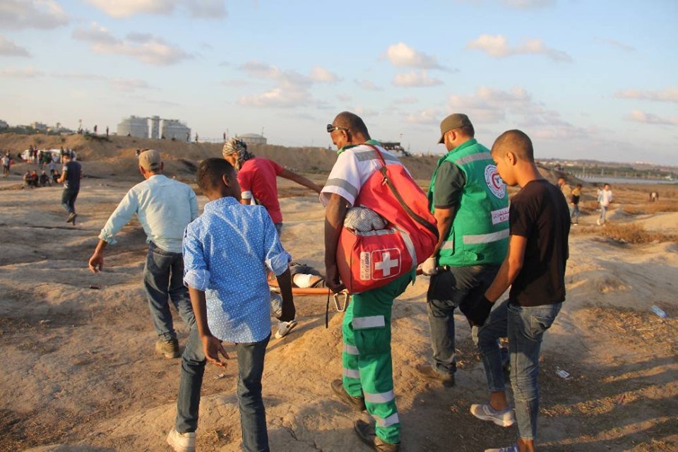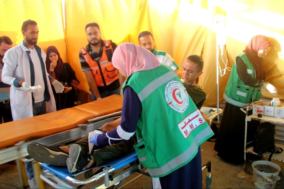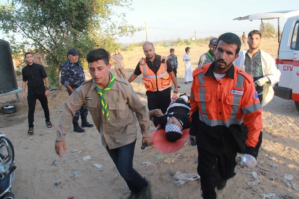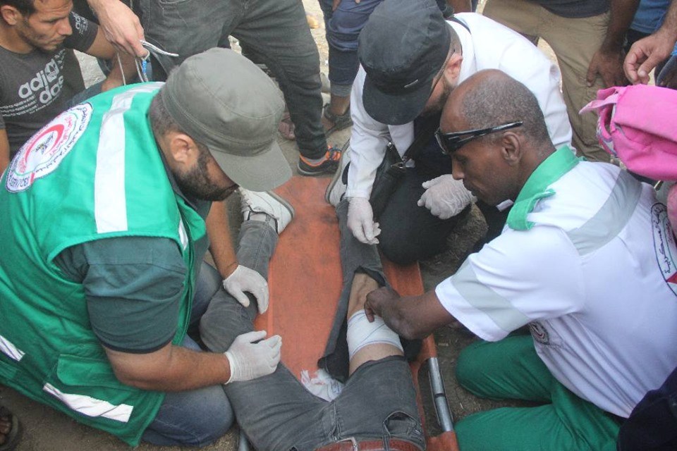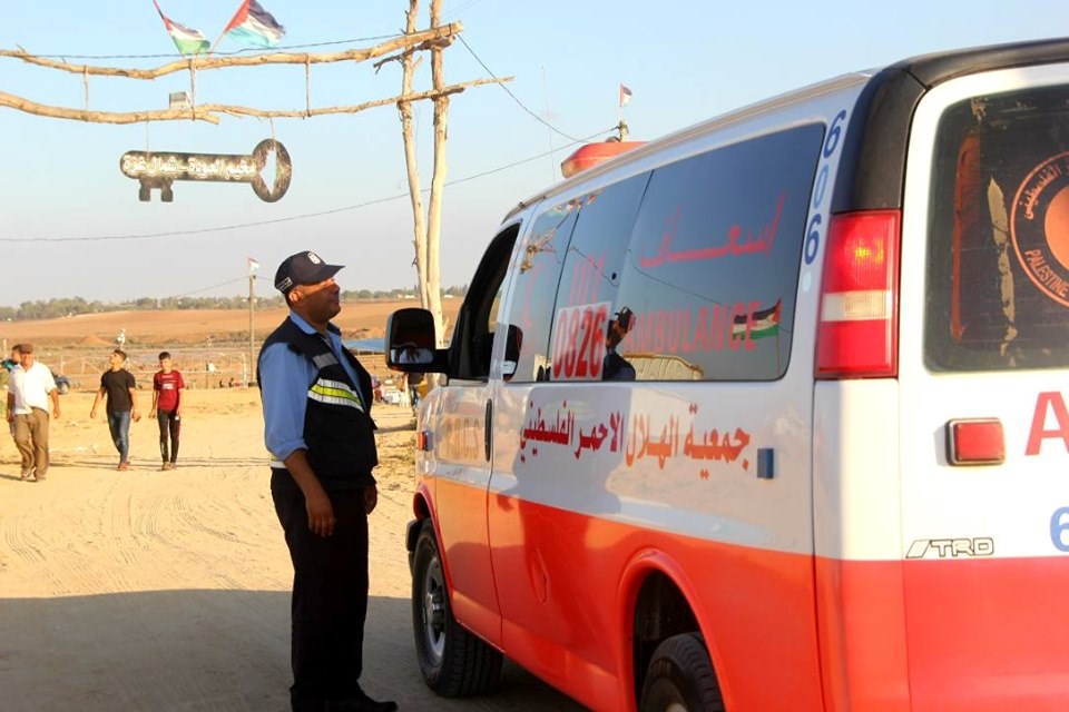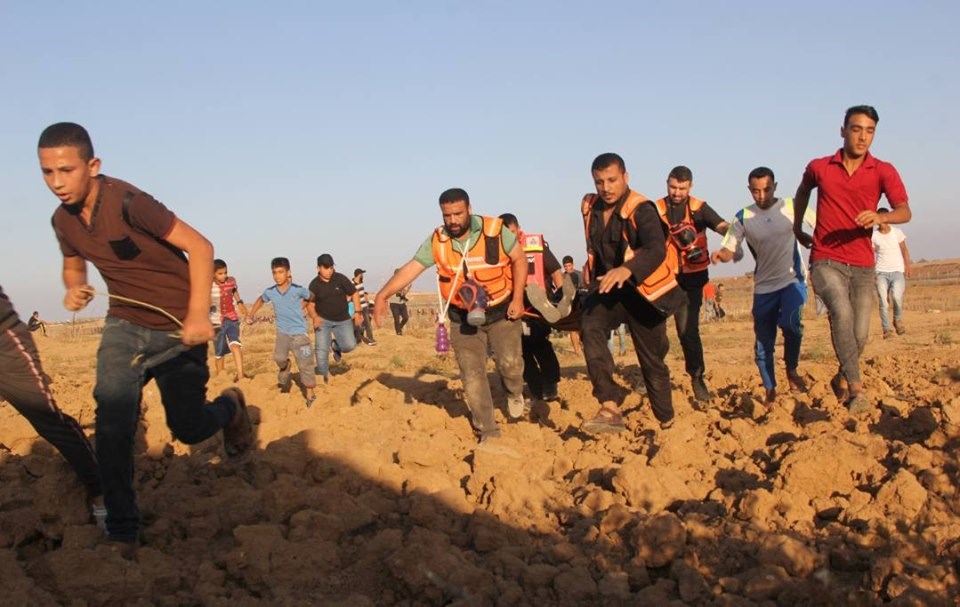 على إسناد الجماهير وإسعاف المصابين في جمعة "لا للتطبيع"، قرب السياج الفاصل