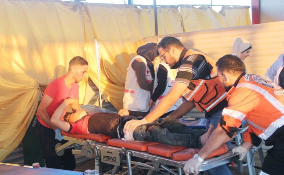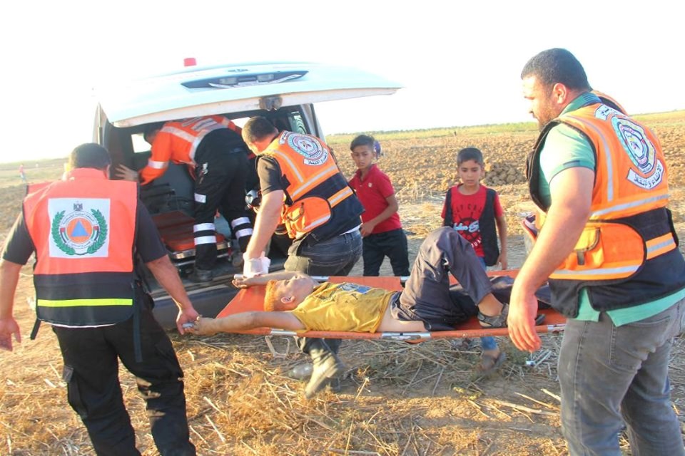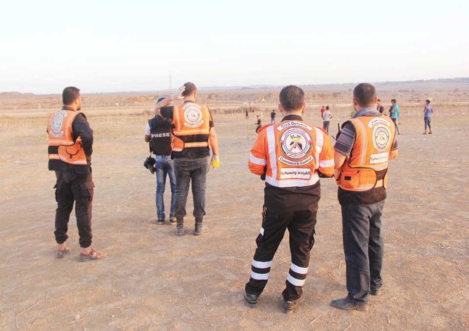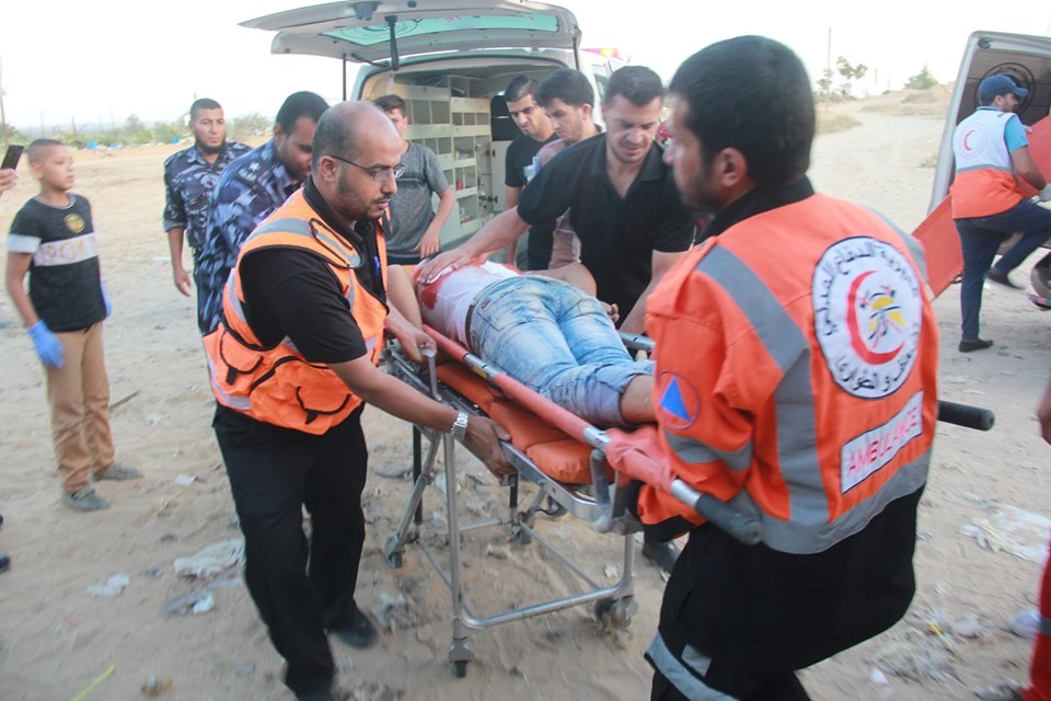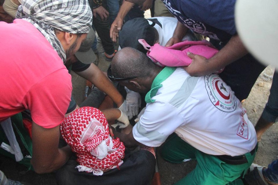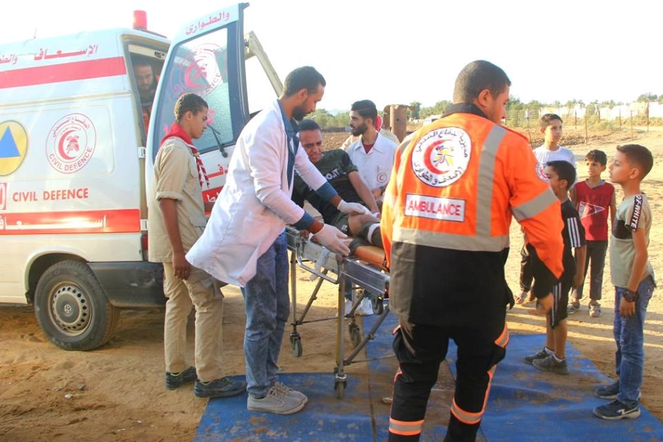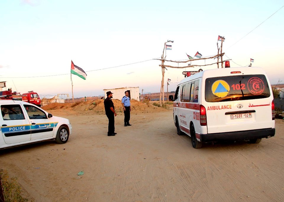 على إسناد الجماهير وإسعاف المصابين في جمعة "لا للتطبيع"، قرب السياج الفاصل