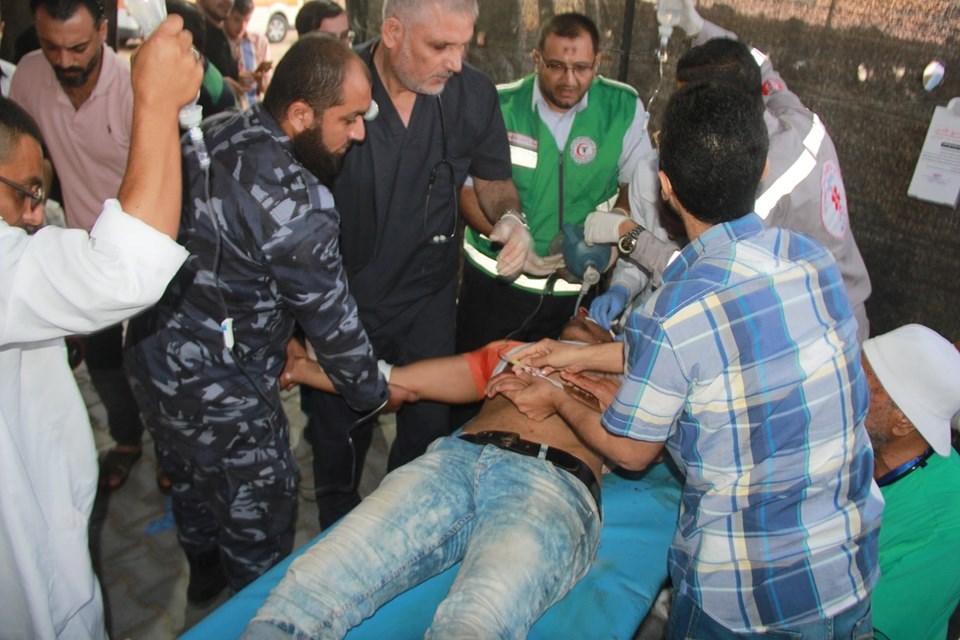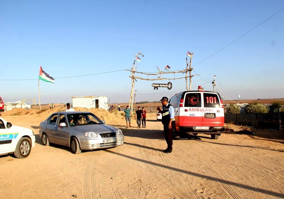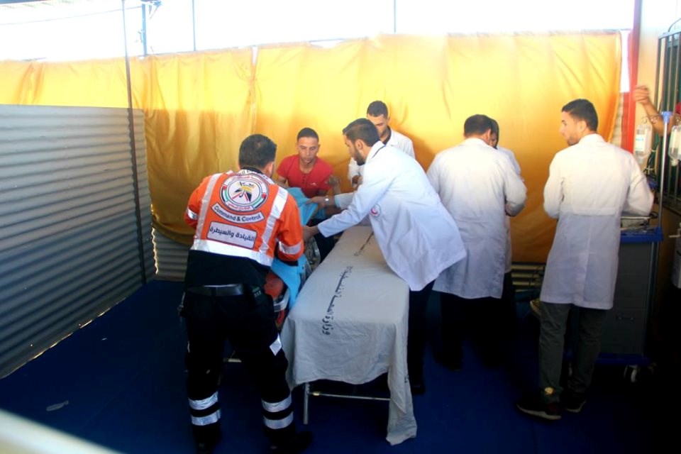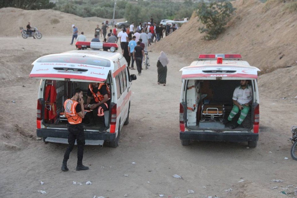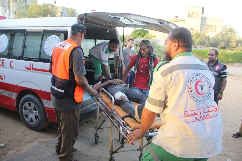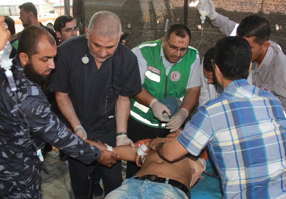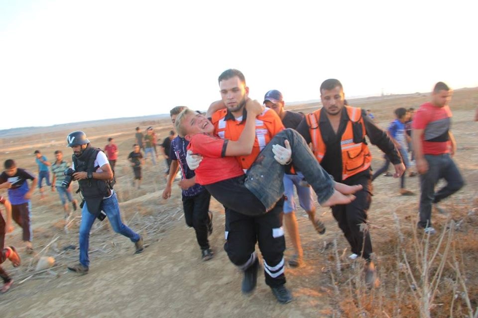 على إسناد الجماهير وإسعاف المصابين في جمعة "لا للتطبيع"، قرب السياج الفاصل
