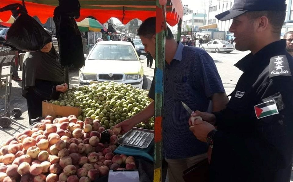 شرطة بلديات محافظة شمال غزة كمية من الفواكه الفاسدة، وذلك خلال جولة لها في سوق معسكر