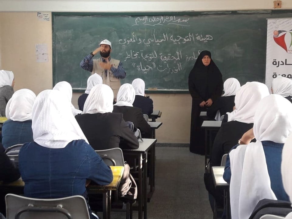 كما نظمت هيئة التوجيه السياسي في المحافظة الوسطى ملتقى تربوي لطلاب الكلية الجامعية للعلوم التطبيقية بعنوان "نور حياتك" ضمن حملة ما تجر بهاش للتوعية من مخاطر المخدرات"، بحضور النقيب عيسى مقداد من توجيه الوسطى و الشيخ إسلام أبو سعيد ، و القارئ إسحاق مطر، واستهدف الملتقى أكثر من ??? طالباً من الكلية، حيث نظمت الهيئة لقاءً لأمهات الأيتام بمؤسسة النور، ضمن "المبادرة المجتمعية للتوعية من مخاطر المخدرات .. حياة"، وألقتها أ. فدوى عطا الله.