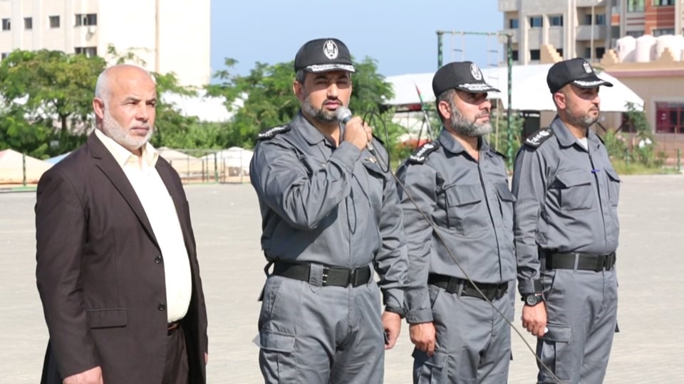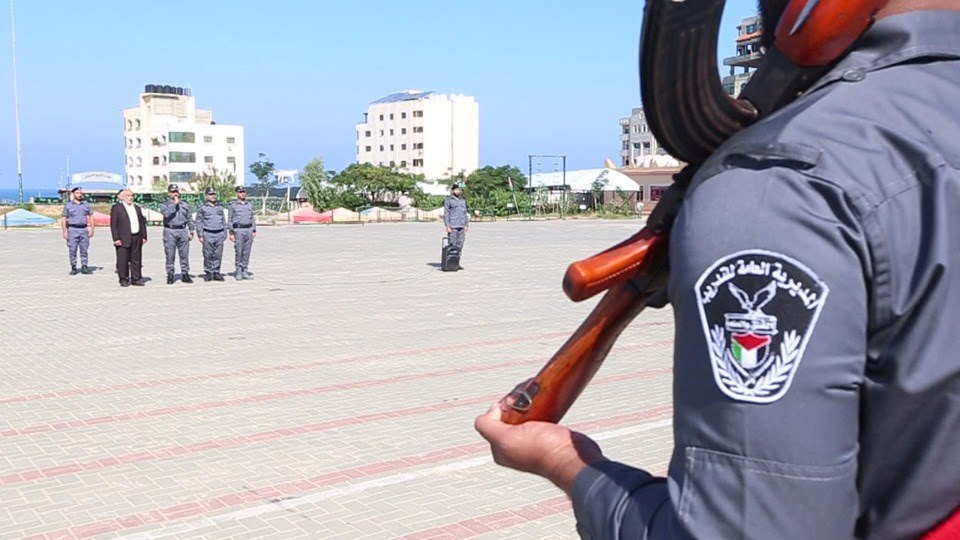 الطابور وكيل وزارة الداخلية والأمن الوطني اللواء توفيق أبو نعيم ومدير عام