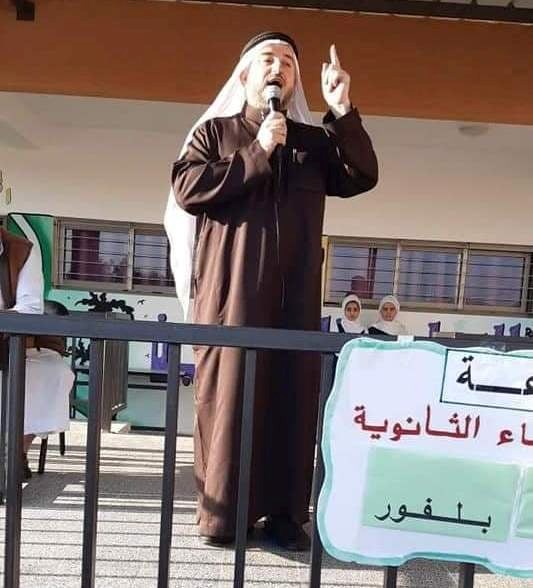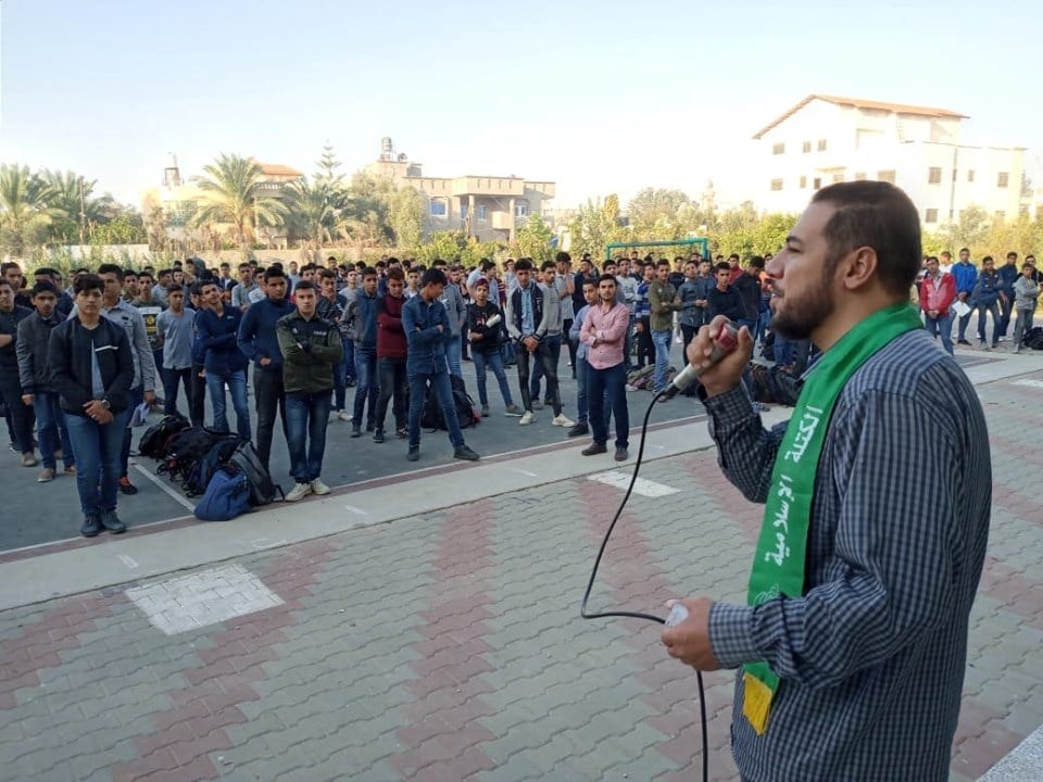 بلفور المشؤوم خلال طابور صباحي لطالبات مدرسة الشيماء الثانوية للبنات في بيت لاهيا.