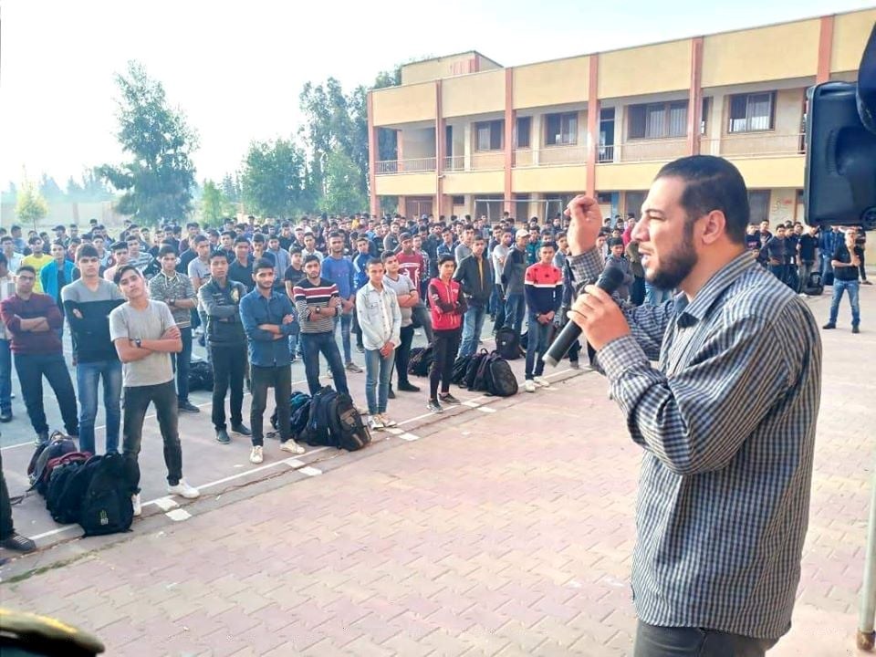 إلقاء سلسلة محاضرات توعوية داخل صفوف المدرسة تحدث فيها الرائد يوسف مهادي والرائد