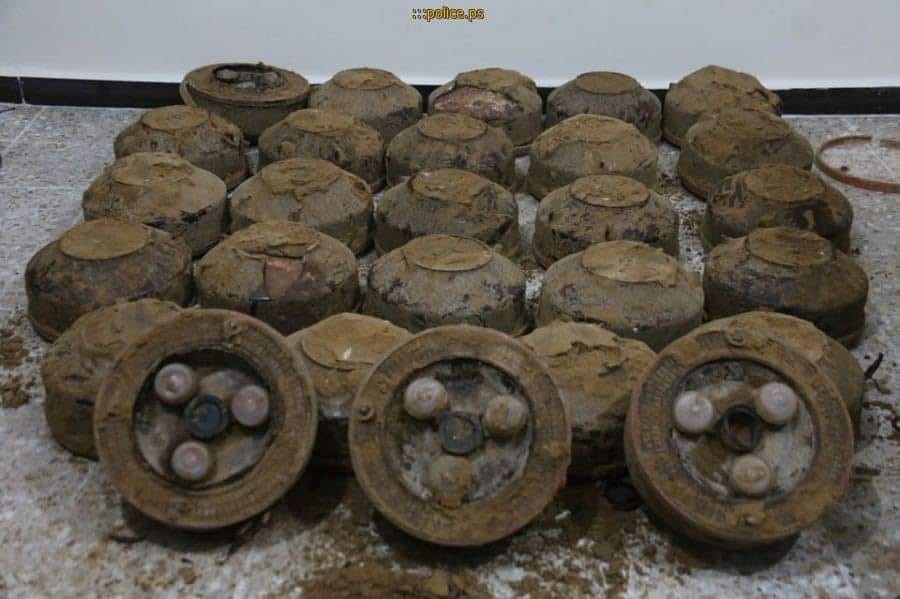 دائرة شرطة هندسة المتفجرات بمحافظة خان يونس على "27" لغماً أرضياً مضاداً للدروع، وذلك شرق القرارة شمال شرق محافظة خان يونس.