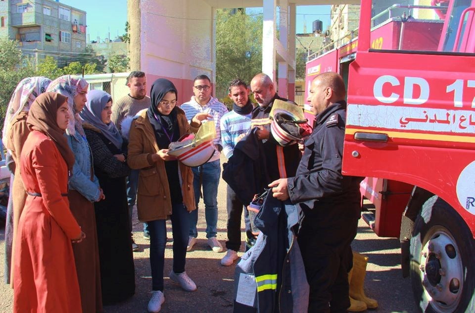 على مهام الدفاع المدني والقيام بنشاط تدريبي لهم وتعريفهم على أعمال رجال الإطفاء