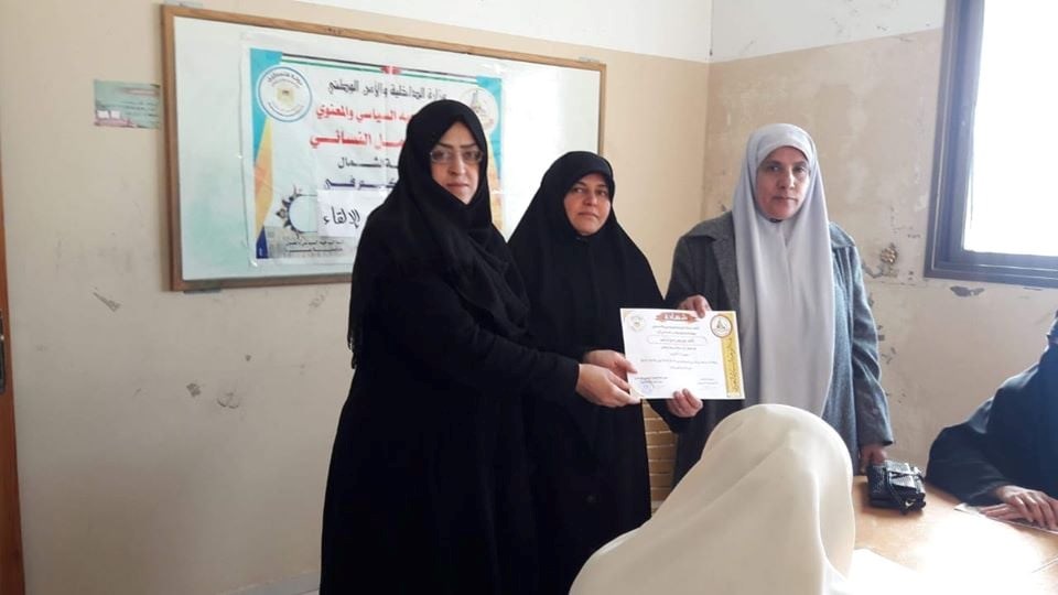 اختتمت هيئة التوجيه السياسي والمعنوي بقسم العمل النسائي بمحافظة الشمال دورة "مهارات الإلقاء ". والتي استهدفت طالبات ونساء المجتمع المحلي بجمعية الشابات المسلمات بواقع "15" ساعة حيث تم توزيع الشهادات على المشاركات فى نهاية الدورة