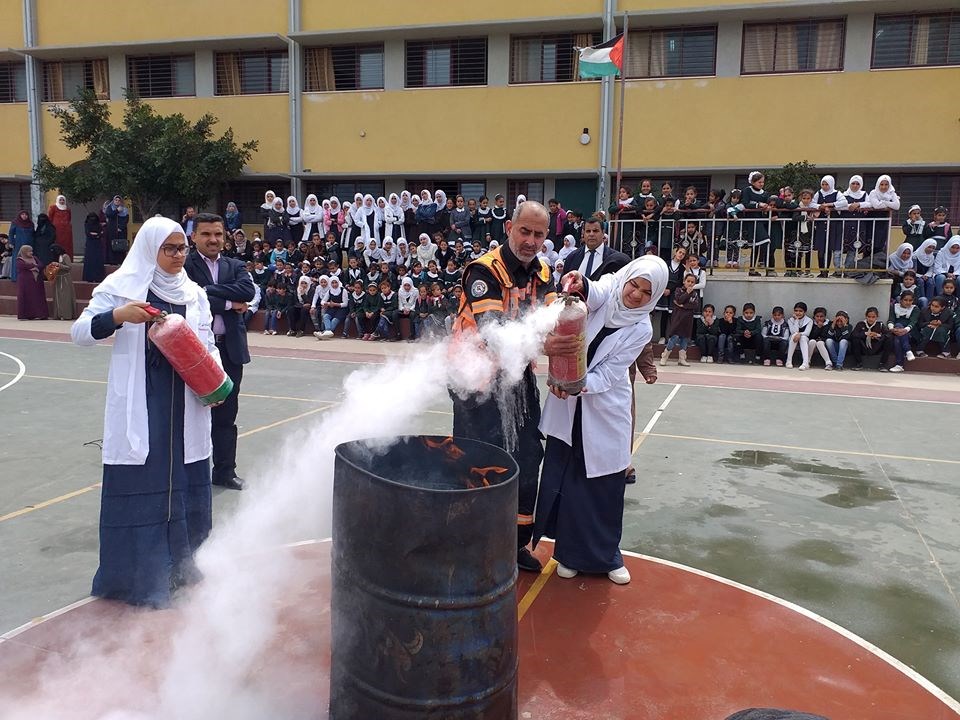 الإطفاء والإسعاف والتدريب على طرق الأمن والسلامة والإخلاء من داخل المنازل والمدارس