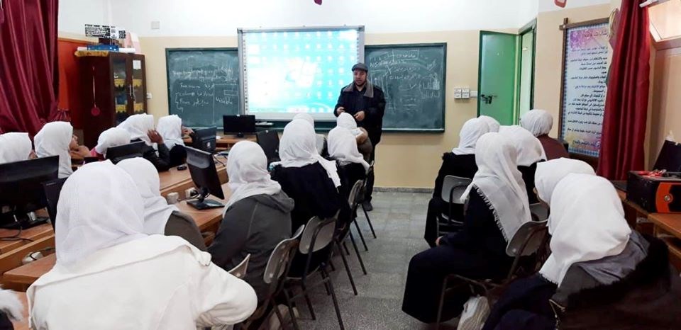 مدرسة هايل عبد الحميد الثانوية للبنات حيث تحدث النقيب أحمد عكاشة خلال اللقاء حول"