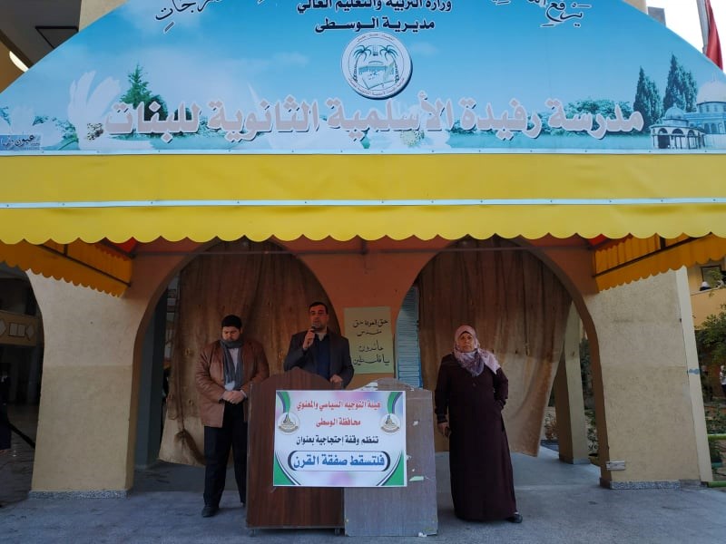 نظمت هيئة التوجيه السياسي و المعنوي في محافظة الوسطى عدد من الطوابير الصباحية بمدراس الوسطى بعنوان "فلتسقط صفقة القرن".