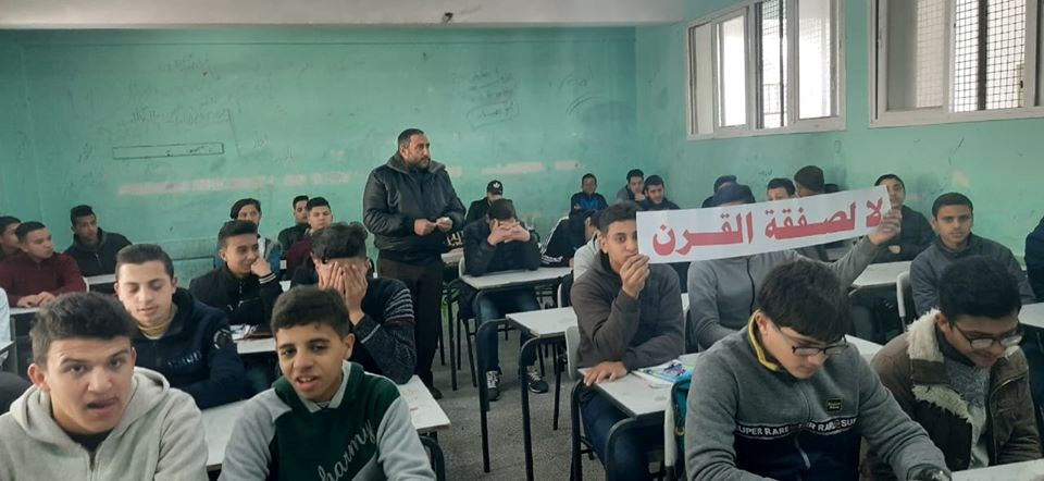 حول صفقة القرن، شملت "جولة توعوية على شرطة مركز المدينة، ومحاضرات توعوية بمدرسة