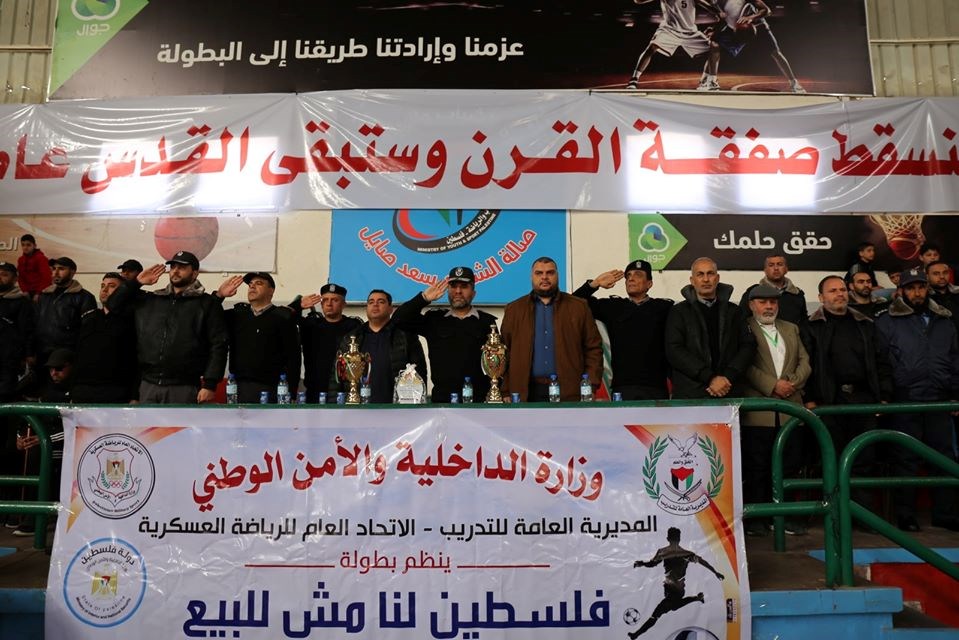 اختتم الاتحاد الرياضي العسكري نهائي بطولة "فلسطين مش للبيع" لكرة القدم الخماسية بمشاركة الأجهزة الأمنية والادارات المركزية بوزارة الداخلية في صالة الشهيد سعد صايل بمدينة غزة.