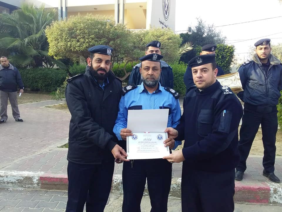 نظم مركز شرطة المدينة في محافظة رفح طابور أركان لجميع الضباط وصف الضباط والعناصر في مركز شرطة المدينة، بحضور المقدم إبراهيم ضهير مدير مركز شرطة المدينة وعدد من الضباط.