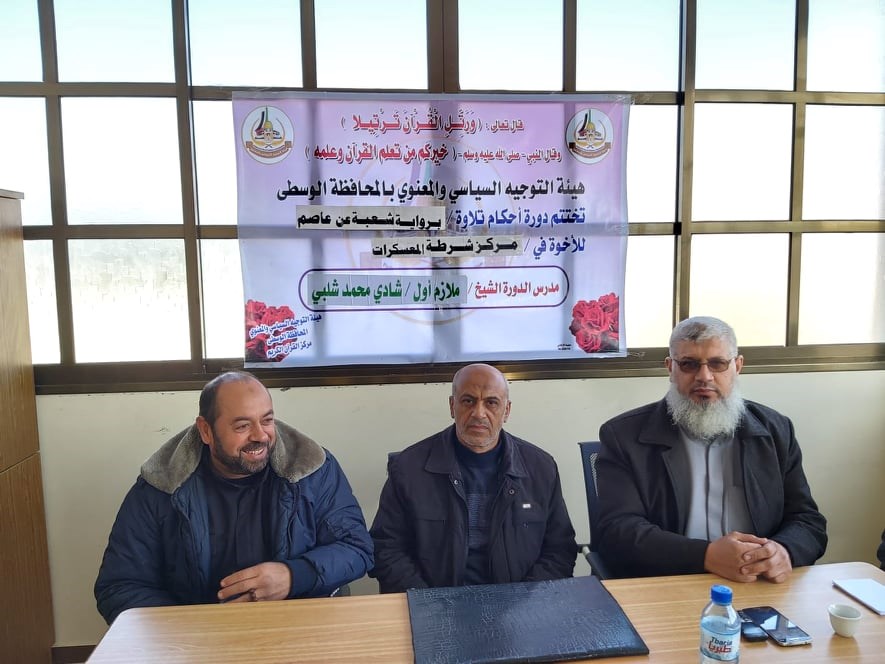 افتتحت هيئة التوجيه السياسي والمعنوي بمحافظة الوسطى دورة أمنية بعنوان "الحس الأمني" لشرطة حراسات المحافظة الوسطى، بحضور المقدم عمر عقل مدير شرطة حراسات المحافظة الوسطى، ومدرس الدورة الأستاذ يوسف درويش واستهدفت الدورة 30 من ضباط وأفراد شرطة الحراسات بواقع 16 ساعة تدريبية.
