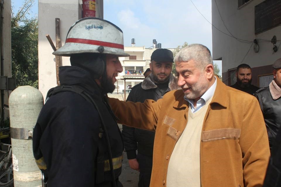 الداخلي، مدير جهاز الدفاع المدني شمال غزة العقيد حسن الجماصي ولفيف من ضباط الجهاز