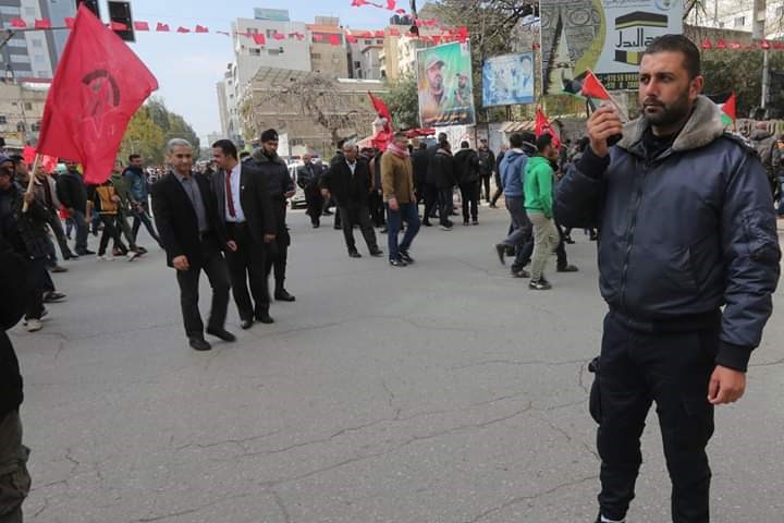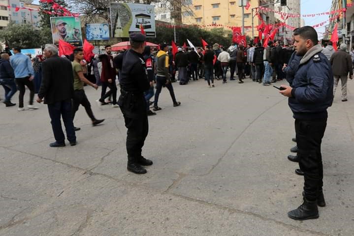 أمّنت الأجهزة الأمنية المختصة في وزارة الداخلية والأمن الوطني مسيرة جماهيرية ومهرجان خطابي في ذكرى انطلاقة الجبهة الديمقراطية لتحرير فلسطين، ظهر اليوم السبت، في محيط برج شوا وحصري وسط مدينة غزة.