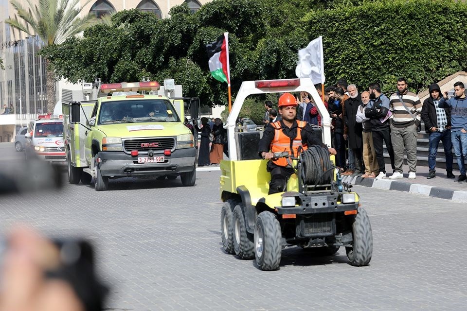 خلال المنحة القطرية من مركبات ومعدات لصالح الدفاع المدني.