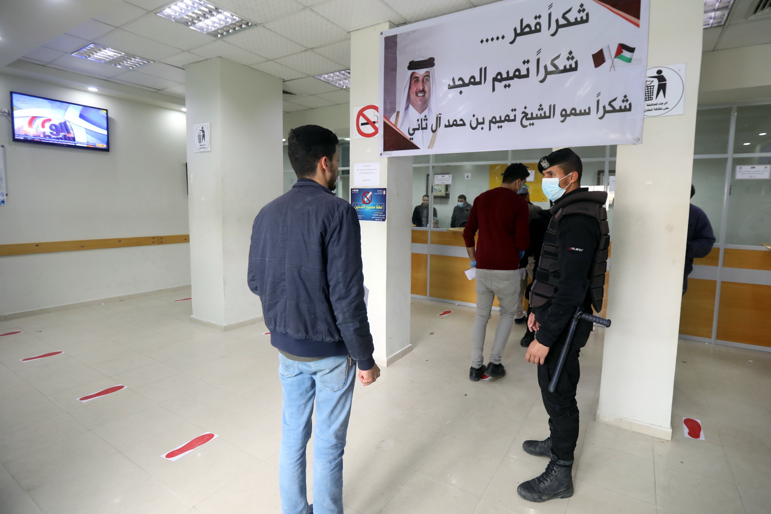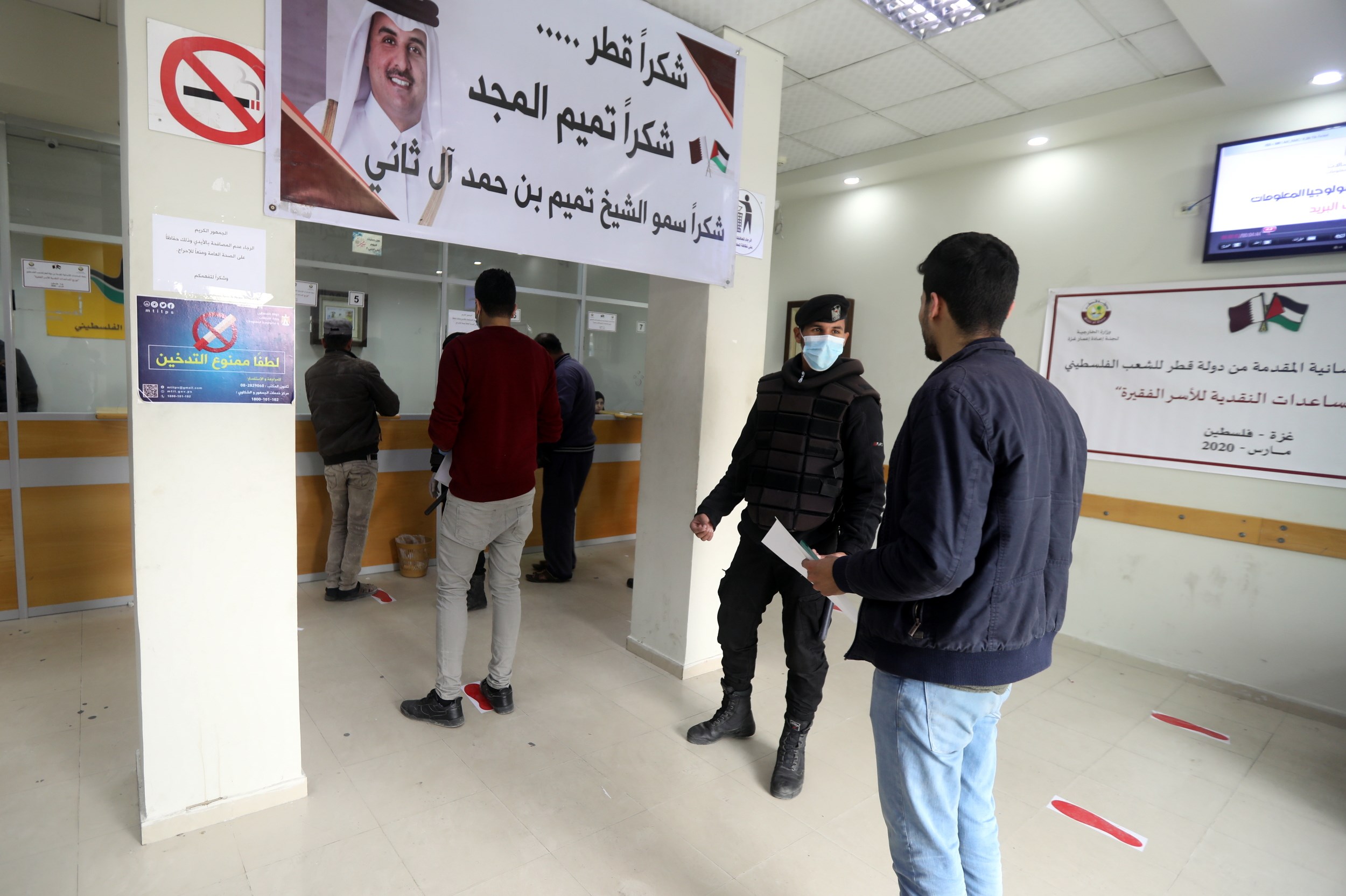 الثلاثاء، عملية صرف المنحة القطرية للأسر الفقيرة في قطاع غزة، وسط إجراءات