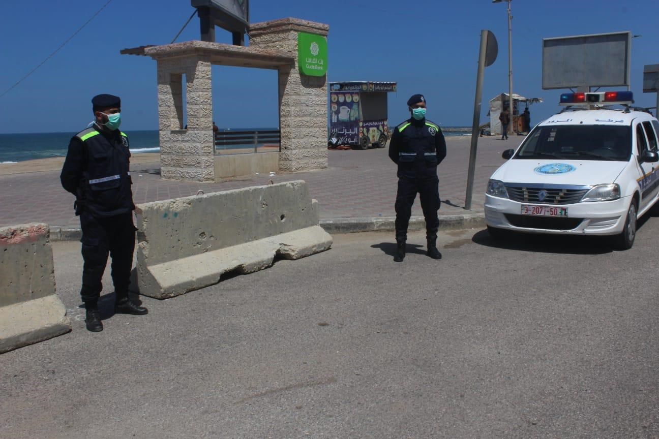 انتشر عناصر شرطة المرور والنجدة على امتداد شارع الرشيد غرب مدينة غزة؛ لمتابعة تنفيذ قرار وزارة الداخلية بمنع تجمهر المواطنين.