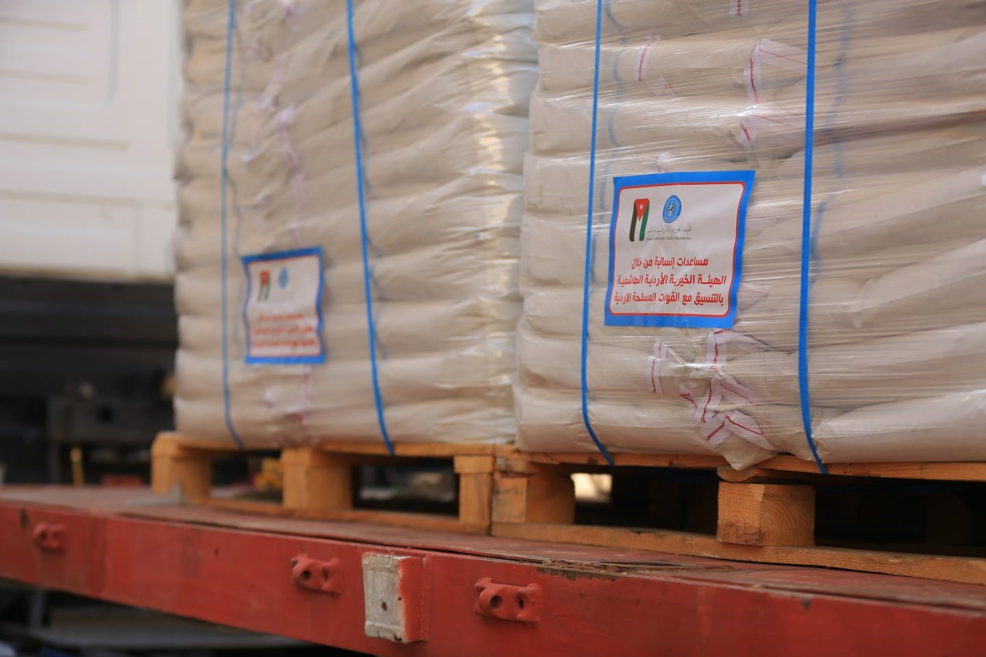 والأمن الوطني، صباح اليوم الثلاثاء، وصول شُحنة مساعدات أردنية لقطاع غزة.