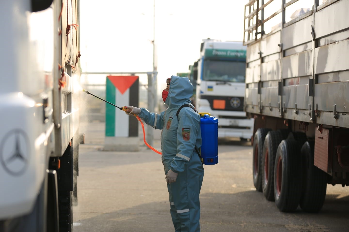 إجراء تعقيم شامل للشاحنتين ومحتوياتهما.