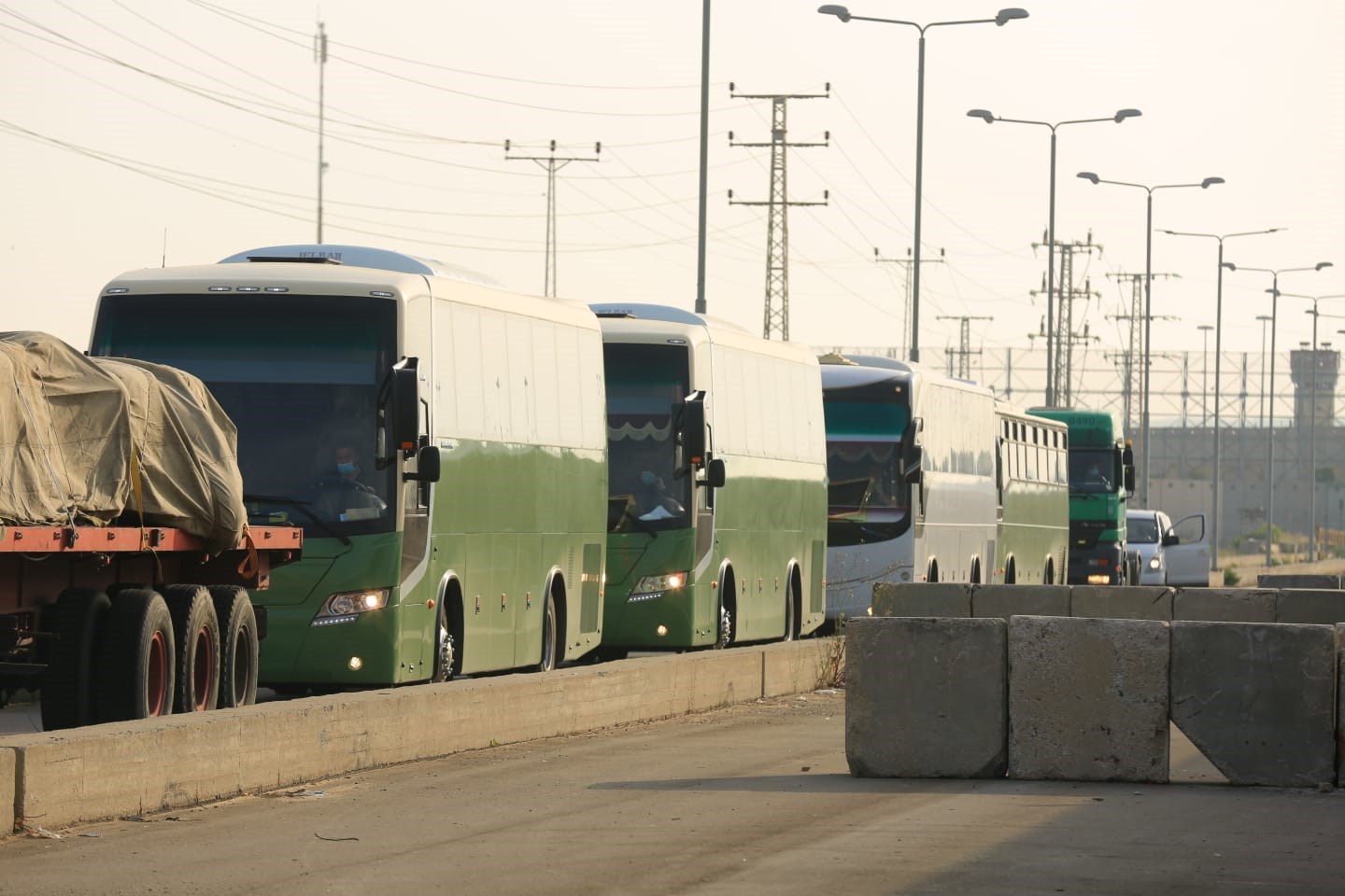 والفنيين من طاقم المستشفى الميداني الأردني، عبر حافلات أردنية خاصة، وفق إجراءات